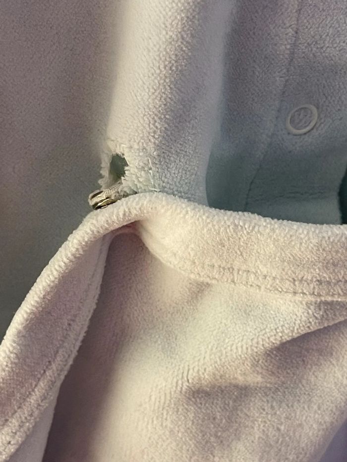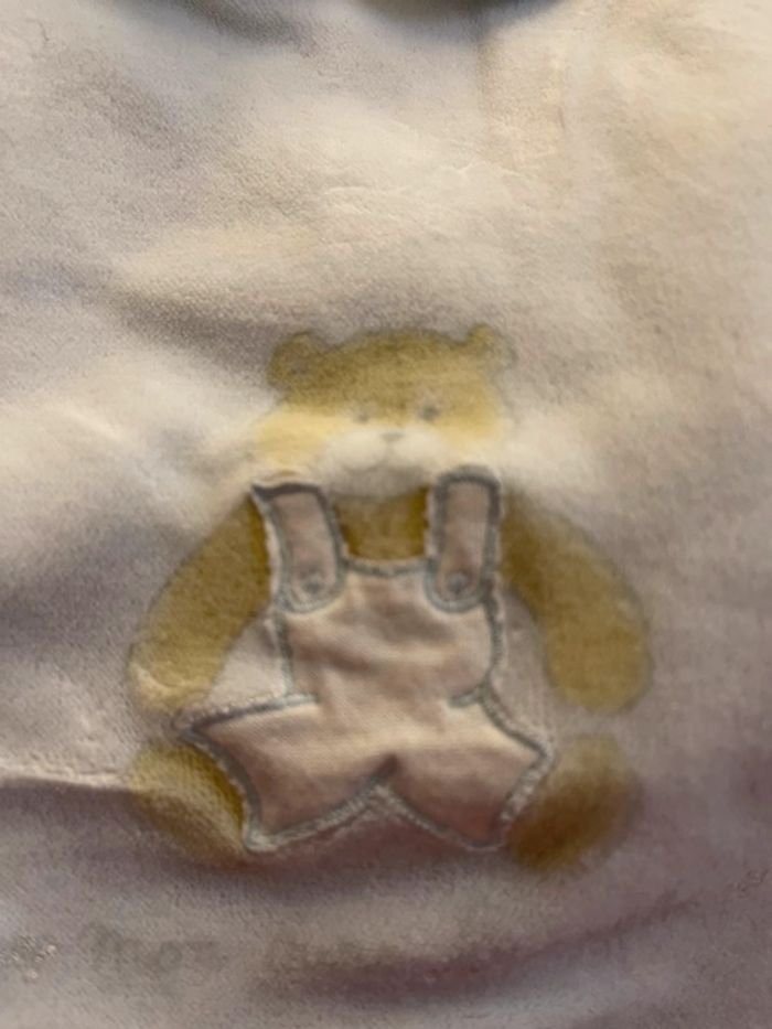 babygros 24 mois en coton, tissu décousu autour d’une pression au dos - voir dernière photo