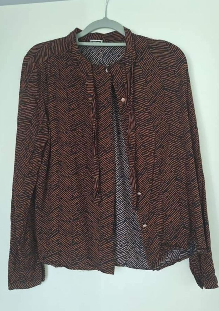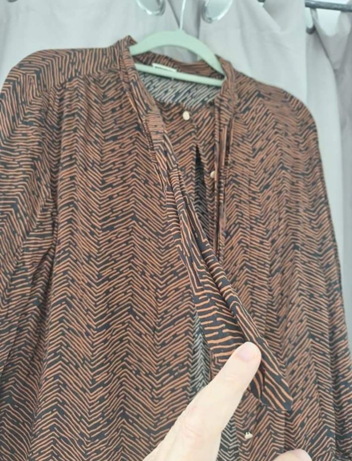 Chemisier en très bon état marron et noir, boutons dorés avec lanières au col, manches longues De marque Pimkie taille 36 Un petit repassage s'impose