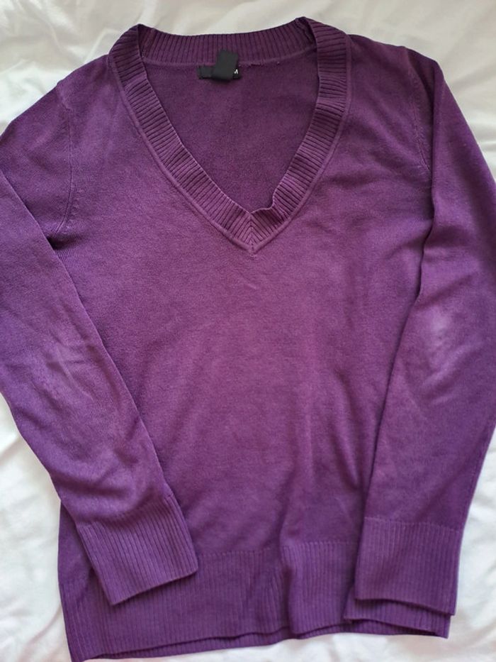 Pull V. Quelques traces d'usure au niveau des coudes. #Femme38Lorel