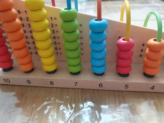 Boulier en bois. Peu utilisé. Il y a juste un petit défaut dans un coin (voir dernière image). Pour un envoi par colissimo, merci de me contacter avant.