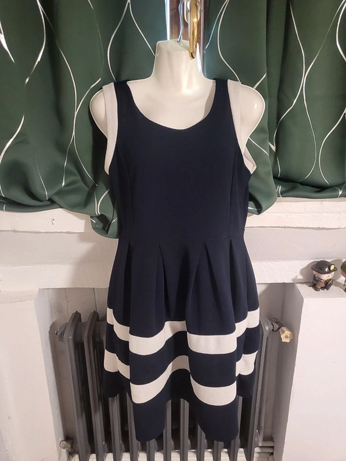 Magnifique robe taille m / l femme bleu marine bas blanc - photo numéro 1
