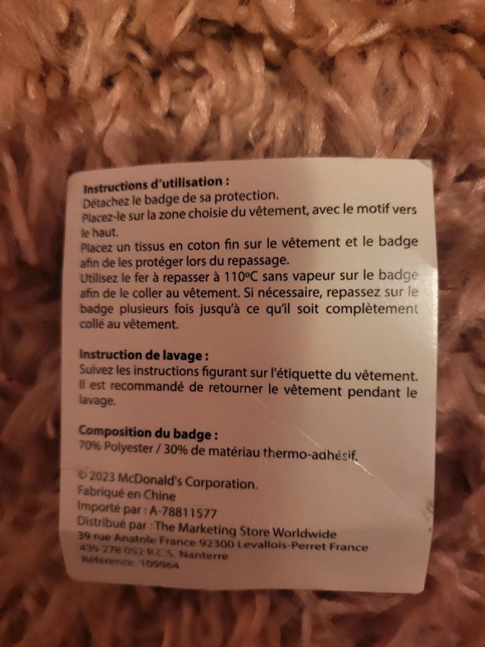 Badge à mettre sur vêtement neuf McDonald's #angeliqueetilenzodiversaccessoiresbeaute