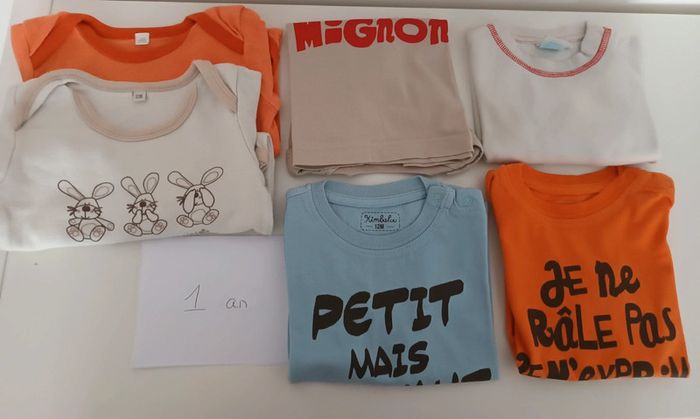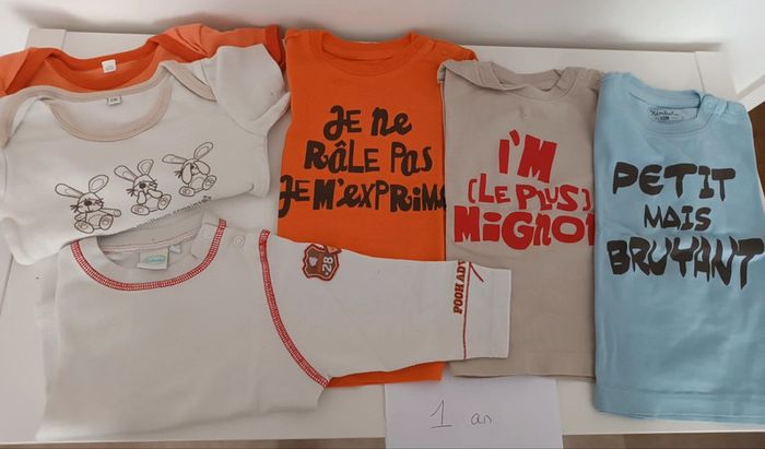 Lot T-shirt et bodys 1 an - photo numéro 1