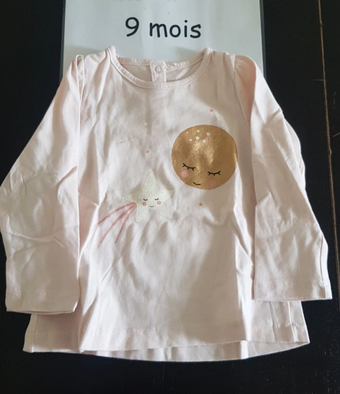 T-shirt ml étoile et lune bout'chou 9 mois - photo numéro 1