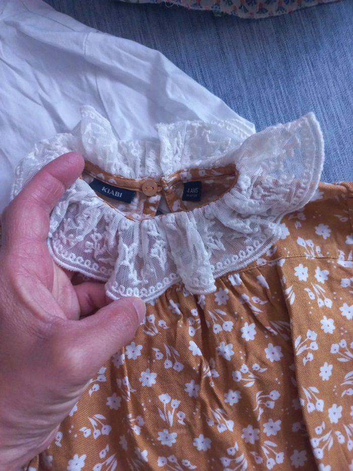1 noir fleuri 1 Moutarde col dentelle fleuri 1 blanc detail col et manches #lenkekepuces4ans