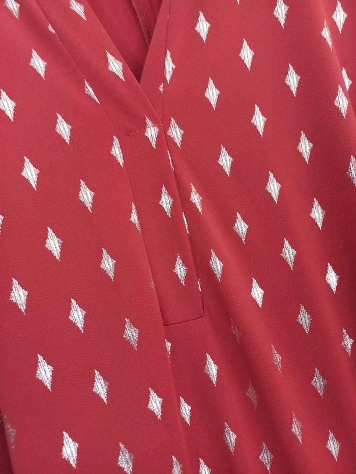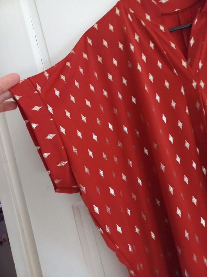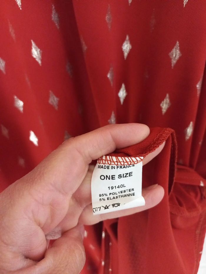Jamais porté Je n'avais pas vu que c'était une robe de grossesse Etiquette taille unique Pour la couleur je dirai rouille et doré