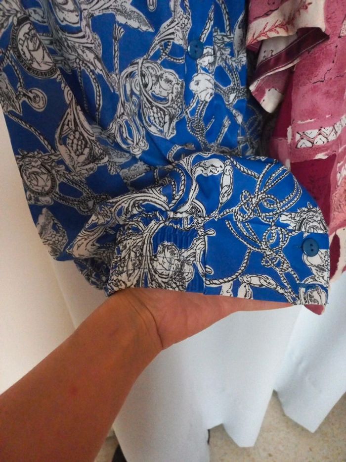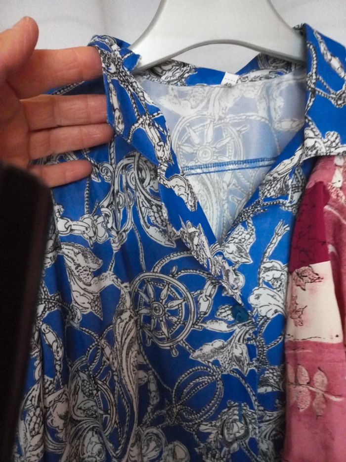 1 chemise manches courtes bouffantes resserée à la taille par une élastique 1 gilet sans fermeture plus d'étiquette mais taille comme le bleu #lenkekefemme42 #lenkekefemme44