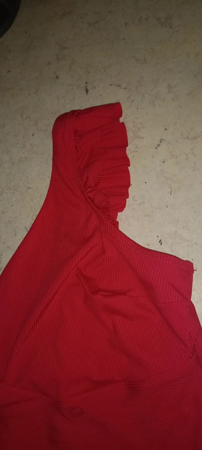 #gwenyana État neuf essayer ne me vas pas Noté 4xl 58 60 mais autant dire plus un 50 52 Manque 2 boutons déjà à l'achat Les autres peuvent être enlevé facilement sans traces ou finiront par eux même par tombés Très joli rouge froufrou aux epaules