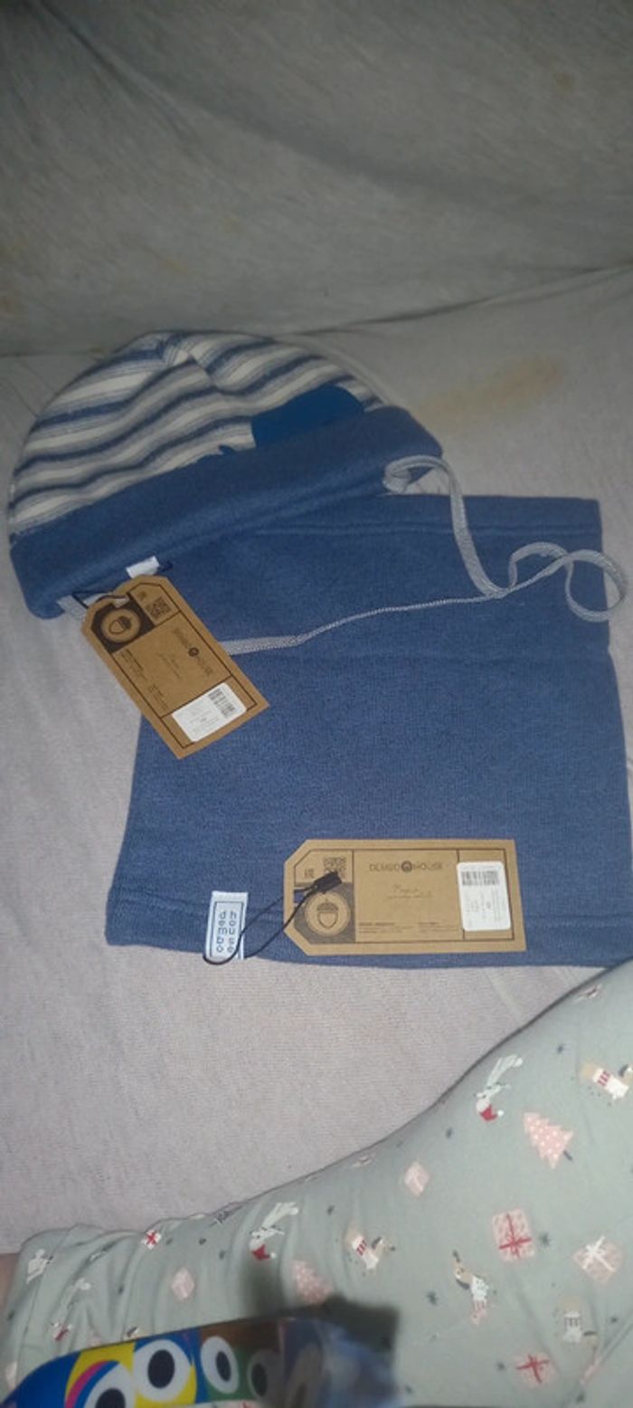 Ensemble  bonnet et tour de coup neuf t.48 env 12mois