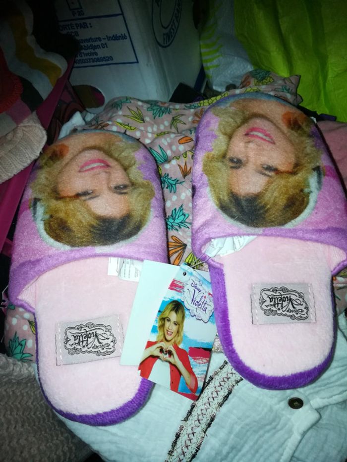 Chaussons violetta 28 29 neuf juste jaunis en dessous