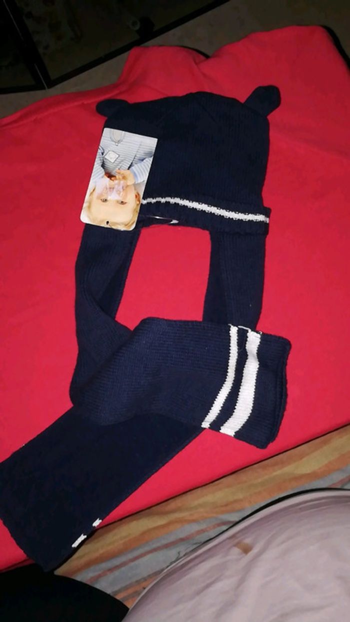 Bonnet echarpe accroché 41cm neuf intérieur polaire - photo numéro 1