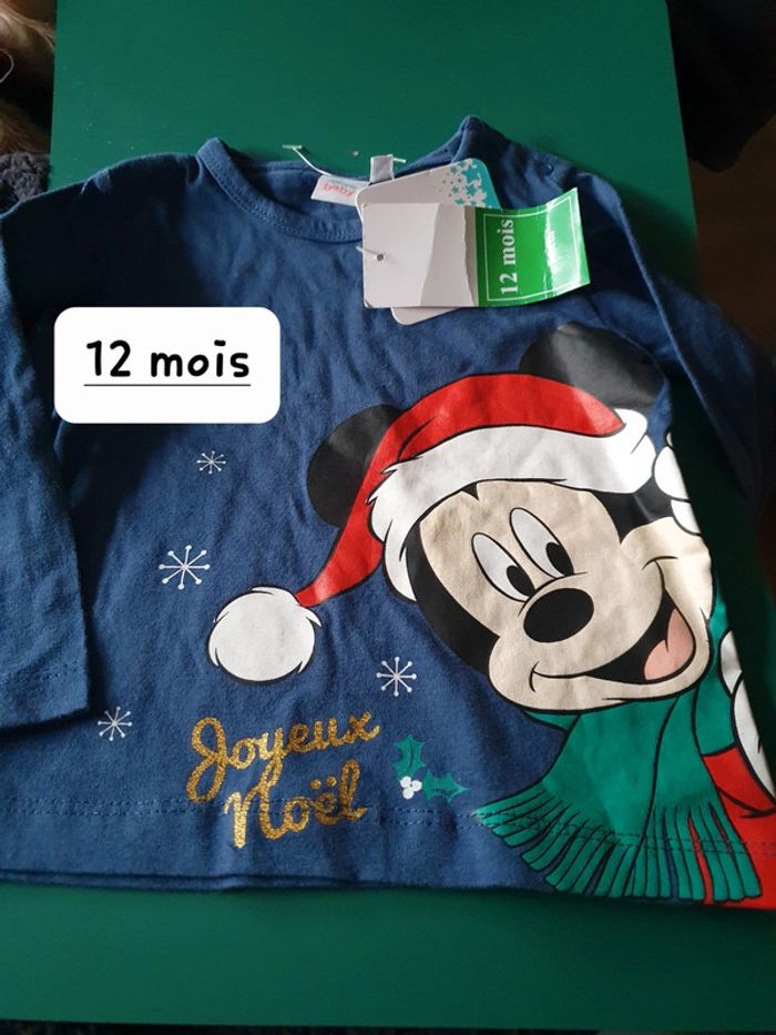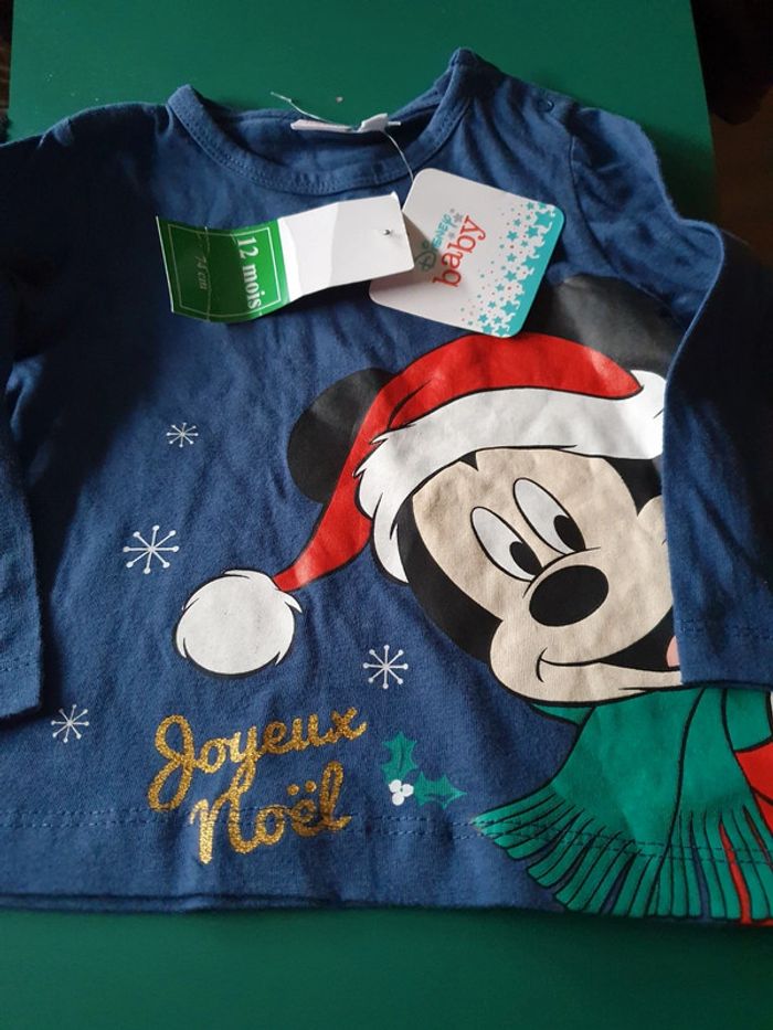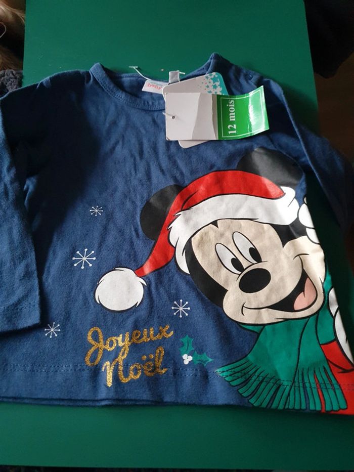 Neuf mickey Noël Tee shirt à manches longues 12 mois bleu
