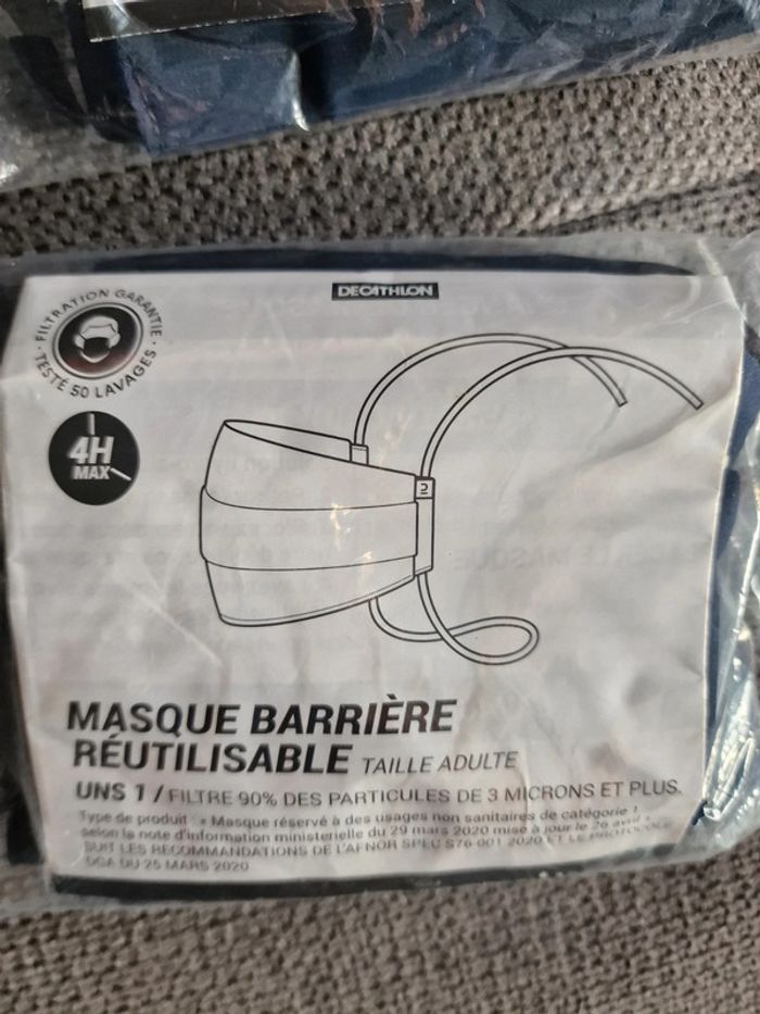 Lot de 2 packs de 2 masques barrière neuves (4 masques en tout) de Décathlon