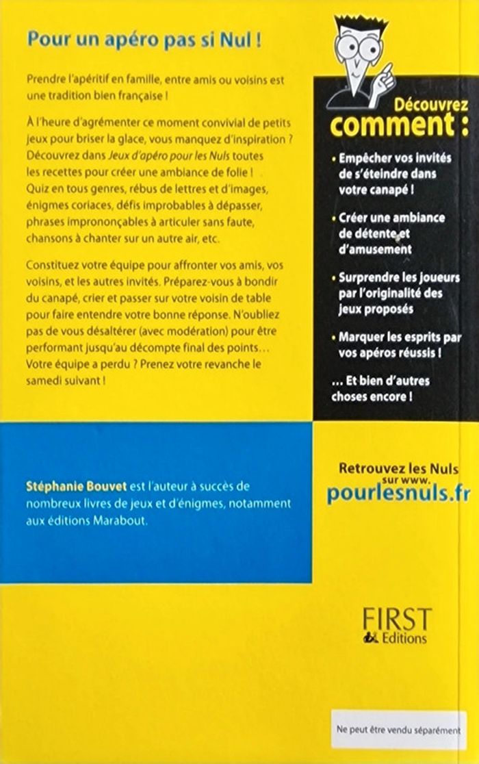Livre "Jeux d'apero pour le nuls" en très bon état