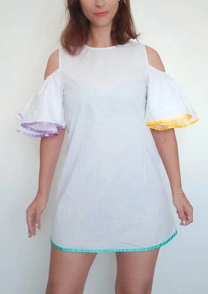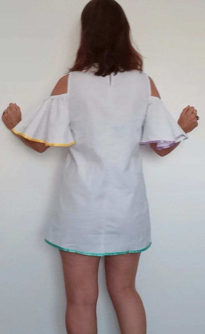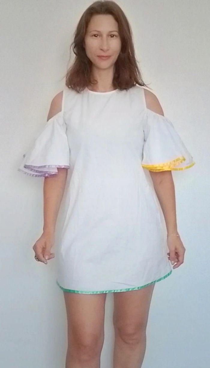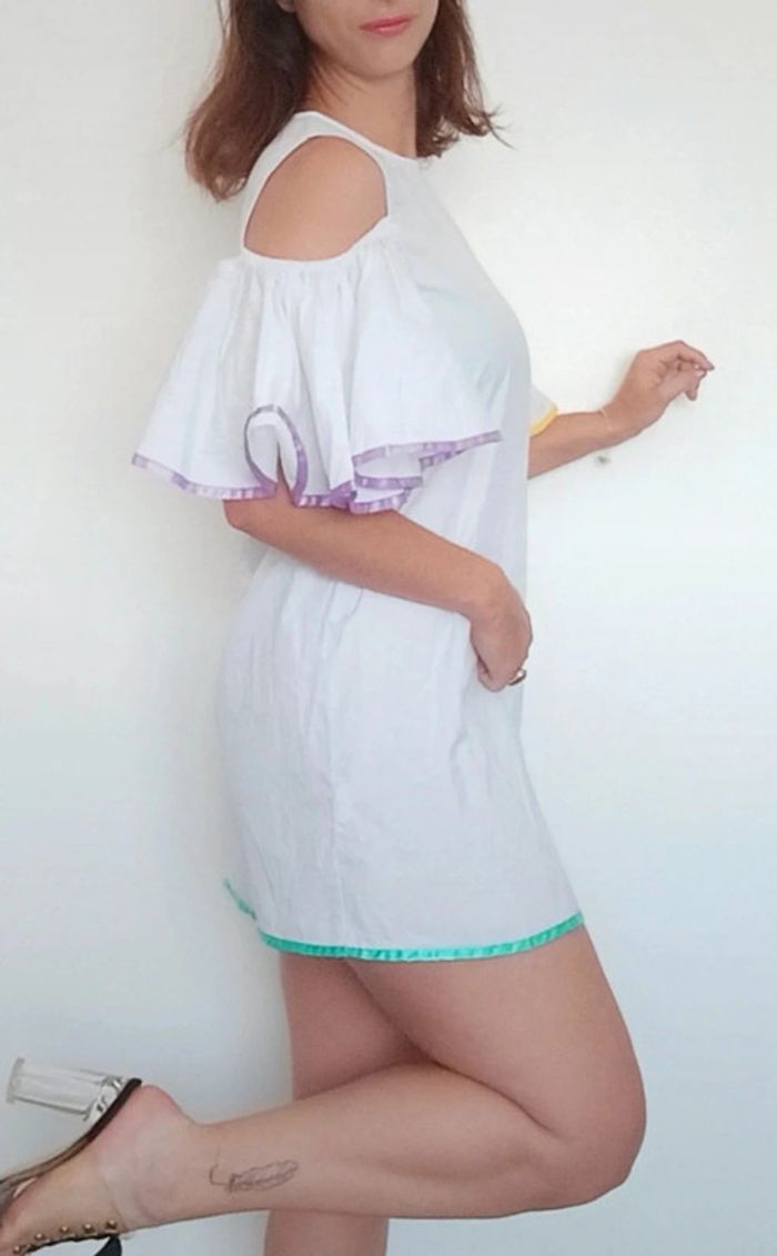 📣 Pour un lot, me contacter 😊🌸 -10% pour deux articles achetés -20% pour trois et + 🥰 #poupoupidoutu 🫶🫶🫶🫶🫶🫶🫶🫶 Robe blanche epaules nues manche courte évasées et bouffantes, bordures multicolores, beaucoup d effet idéale événement #robeceremonie36 #robechic36 #robeblanche36 #robeevenement36 #robetendance36 #robeepaulesnues #robemariage36 #robebapteme36