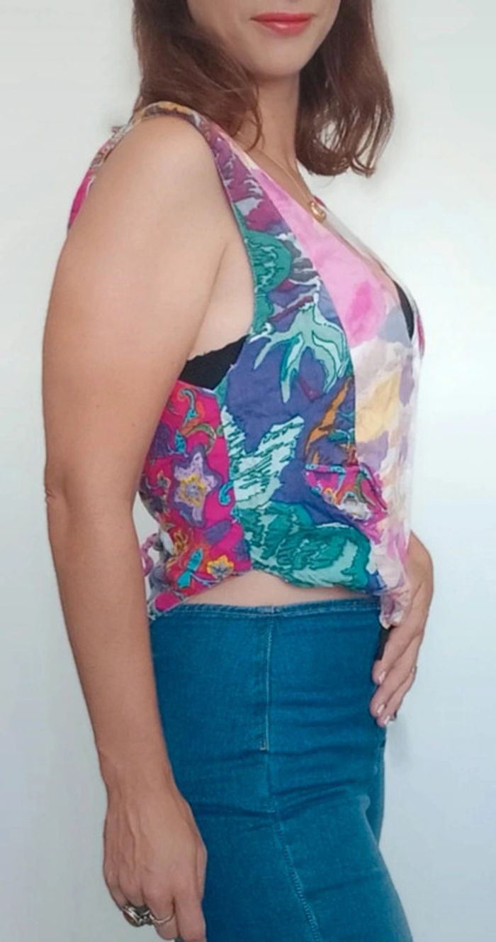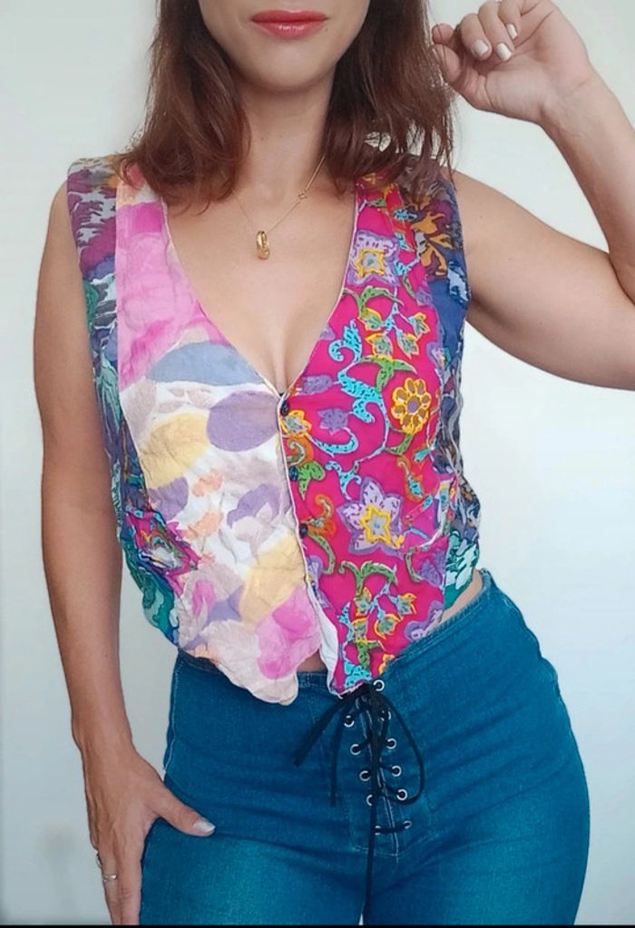 📣 Pour un lot, me contacter 😊🌸 -10% pour deux articles achetés -20% pour trois et + 🥰 #poupoupidou36 🫶🫶🫶🫶🫶🫶🫶🫶 Gilet barman coloré idéal été, pièce #vintage #pepitevintage #giletbarman36 #giletbarmaid36 #giletvintage36