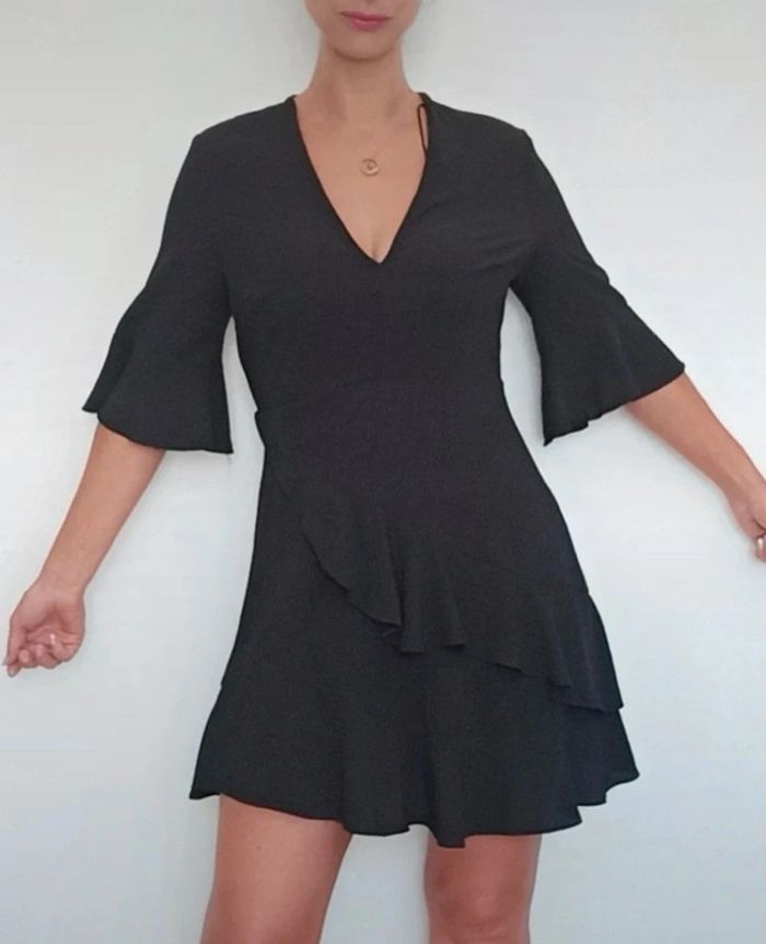 📣 Pour un lot, me contacter 😊🌸 -10% pour deux articles achetés -20% pour trois et + 🥰 #poupoupidou40 🫶🫶🫶🫶🫶🫶🫶🫶 Jolie robe courte Primark décolleté en V, manches trois quart volantée, jupe à volants, facile a porter et a assortir, jamais portée, restée dans mon armoire #robe40 #petiterobenoire40 #robeprimark40 #robenoireprimark40 #robechic40 #robevolants40 #robevolantee40 #robefeminine40