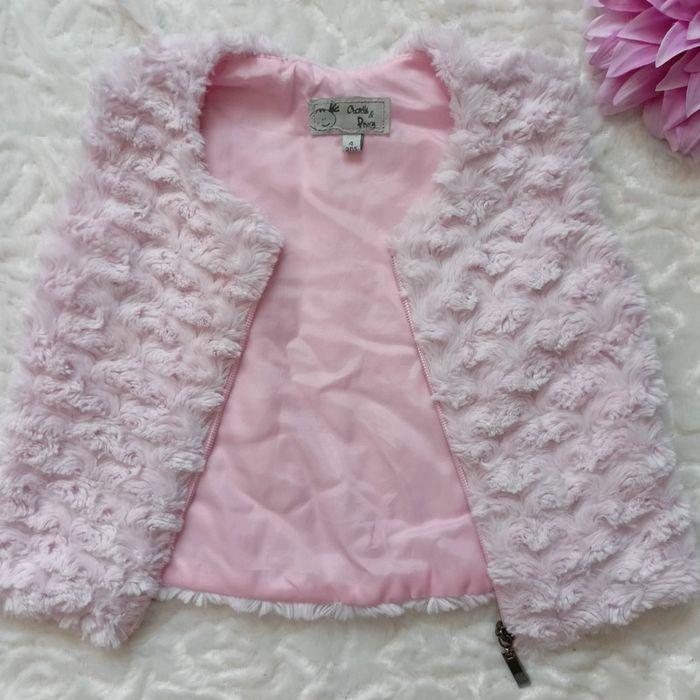 📣 Pour un lot, me contacter 😊🌸 -10% pour deux articles achetés -20% pour trois et + 🥰 #poupoupidou4ans 🫶🫶🫶🫶🫶🫶🫶🫶 Beau gilet idéal sur une robe pour une cérémonie ou soirée d été, en fourrure toute douce rose pâle, a fermeture éclair, tres mimi, porte deux fois #gilet4ans #giletsansmanche4ans #giletfourrure4ans #giletfoururerose #giletfille4ans #giletcetemonie4ans #giletmariage4ans #giletbapteme4ans