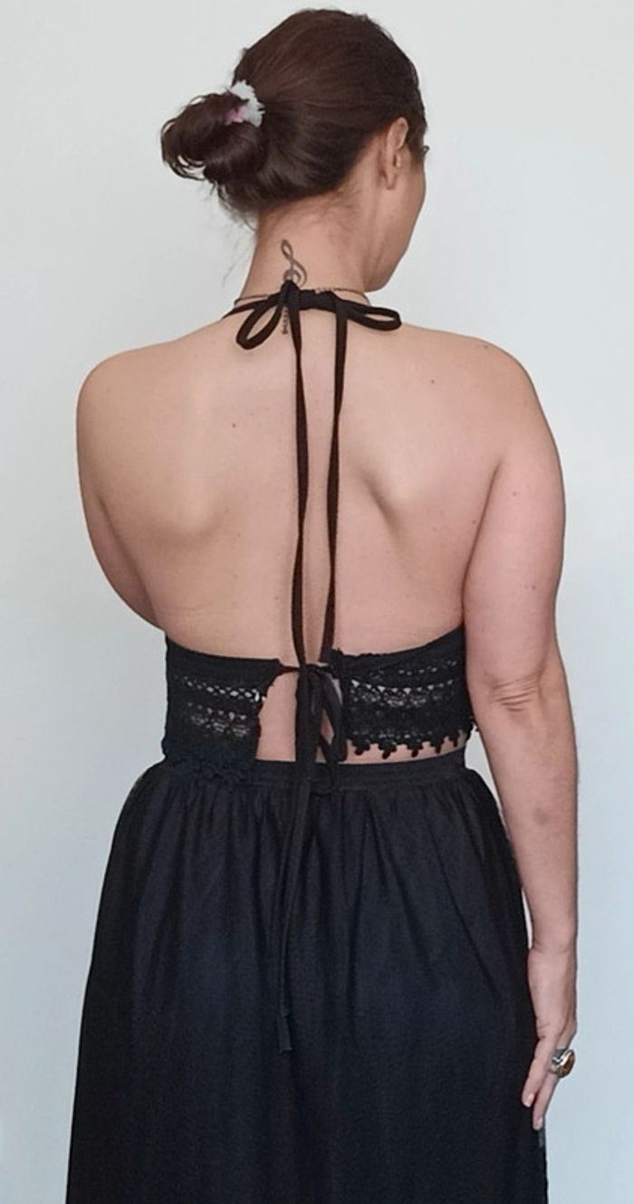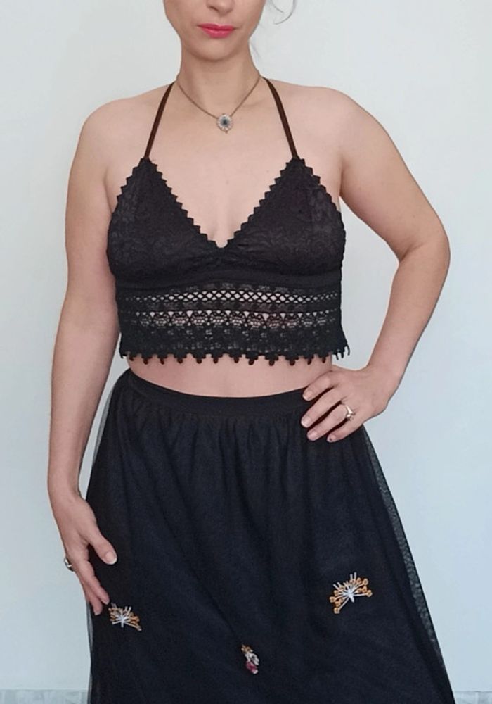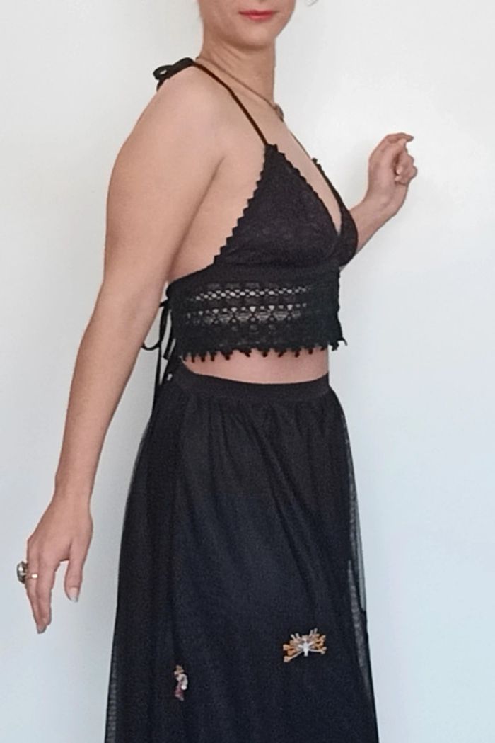 📣 Pour un lot, me contacter 😊🌸 -10% pour deux articles achetés -20% pour trois et + 🥰 #poupoupidoutu 🫶🫶🫶🫶🫶🫶 Top court dos nu a nouer dans le cou et le dos, double crochet, décolleté en V, ajouré sous poitrine, très féminin, uni noir facile a assortir, toutes tailles #topcrop #topcropcrochet #topcourt #topcourtcrochet #topdosnu #topdosnucrochet #topsexychic #dosnu #topplage #topvacances #topsexy #topcourtethnique