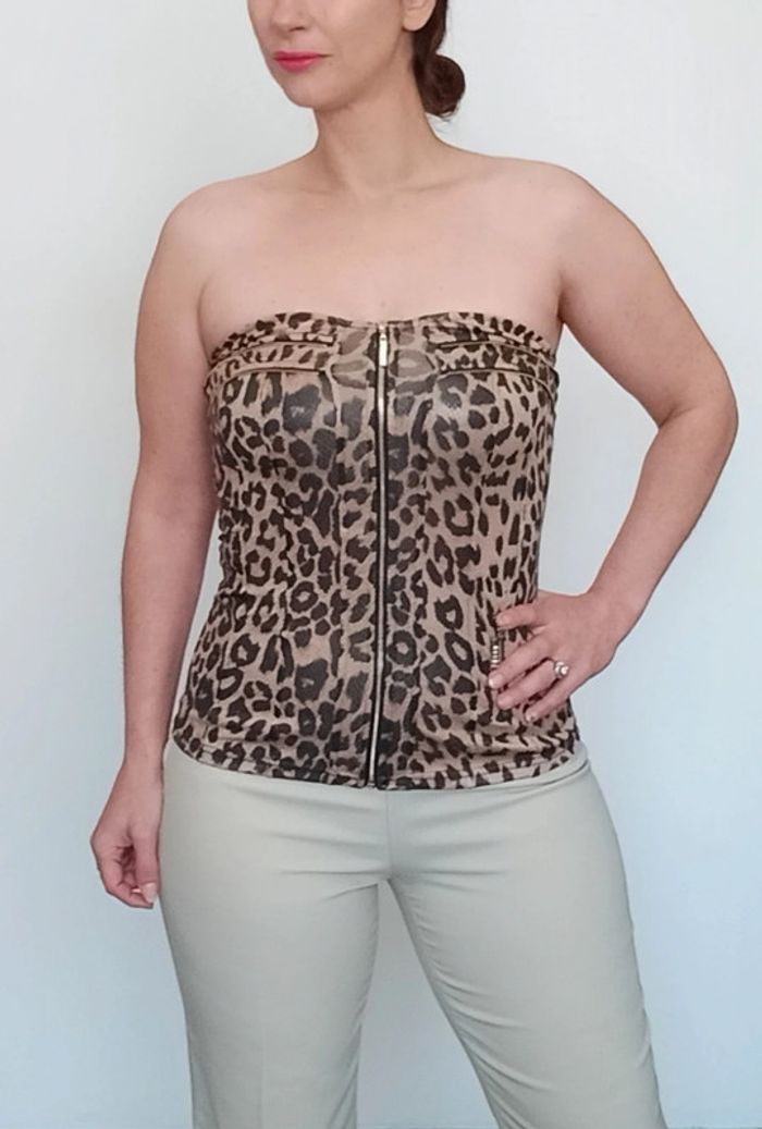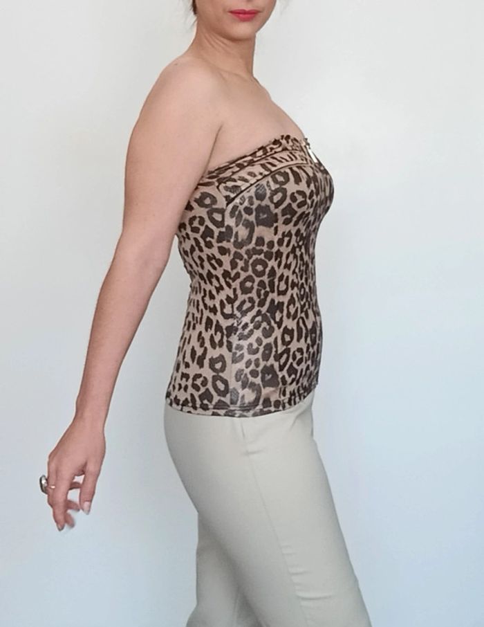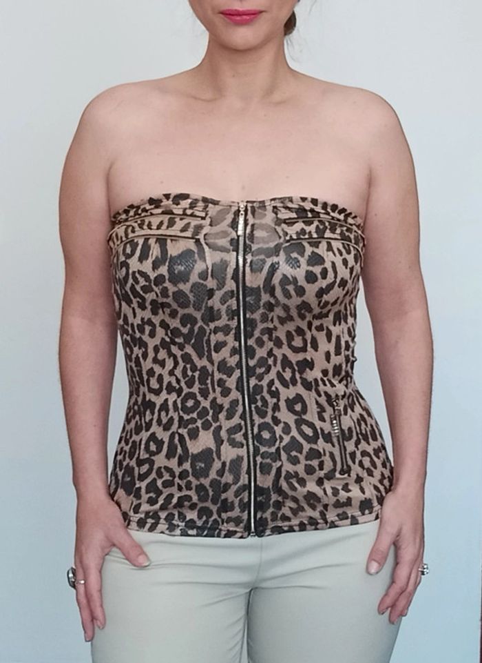 Bustier léopard huilé brillant à zip - photo numéro 1
