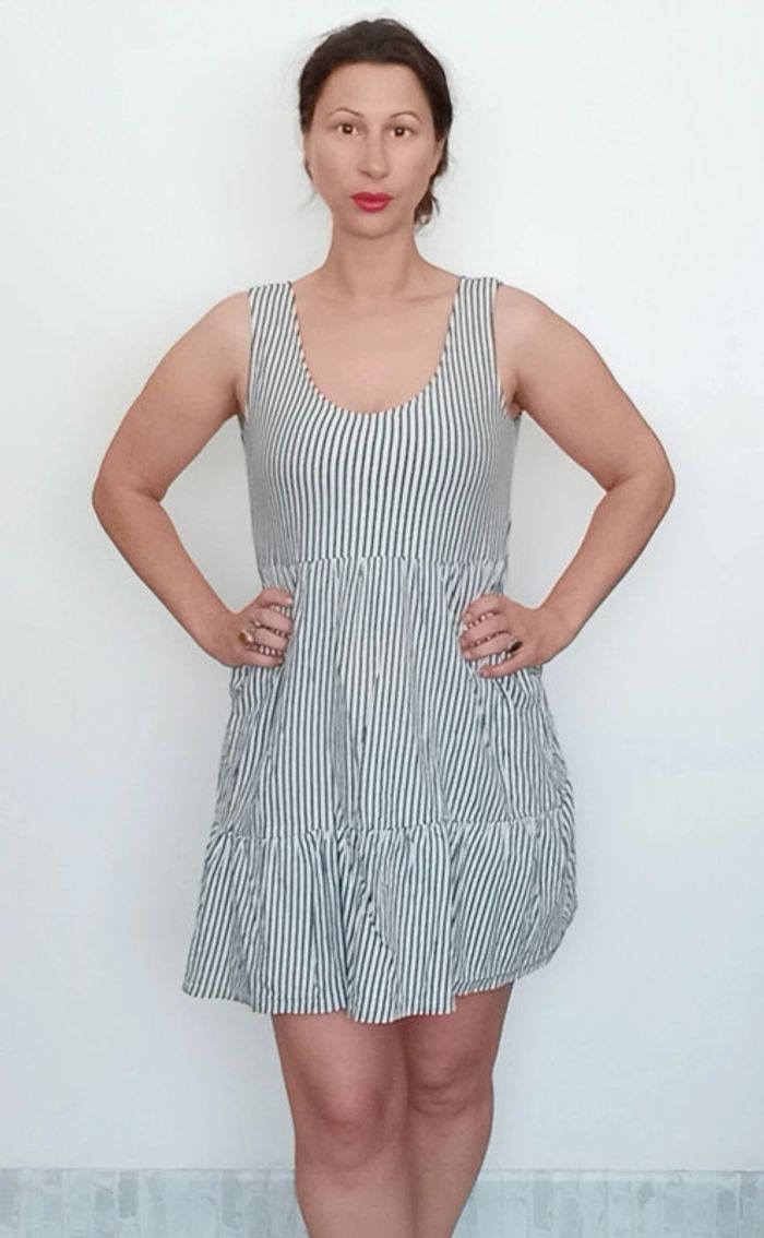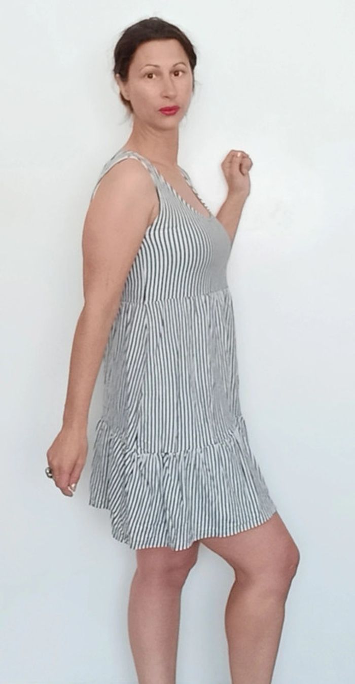 📣 Pour un lot, me contacter 😊🌸 -10% pour deux articles achetés -20% pour trois et + 🥰 #poupoupidou38 🫶🫶🫶🫶🫶🫶 Robe printemps été blanche rayures noires en biais, décolleté rond, taille empire, jupe fluide un volant, courte mais pas mini, a cintrer avec une ceinture ou porter loose, facile a assortir, chic et casual style pinup #robemng38 #robeete38 #roberayee38 #robecasualchic38 #robepinup38