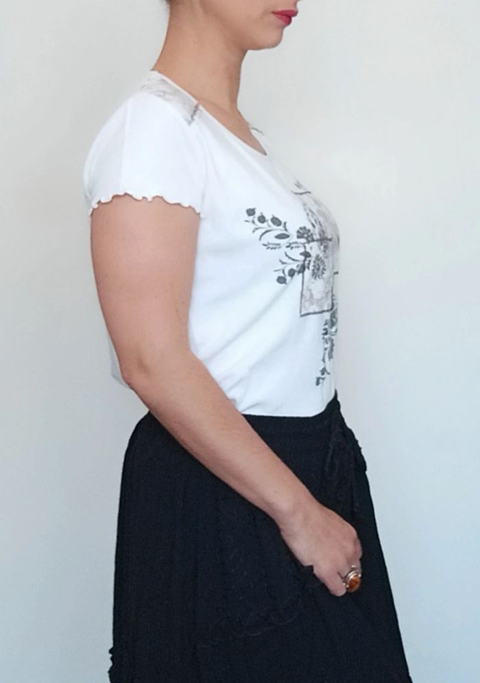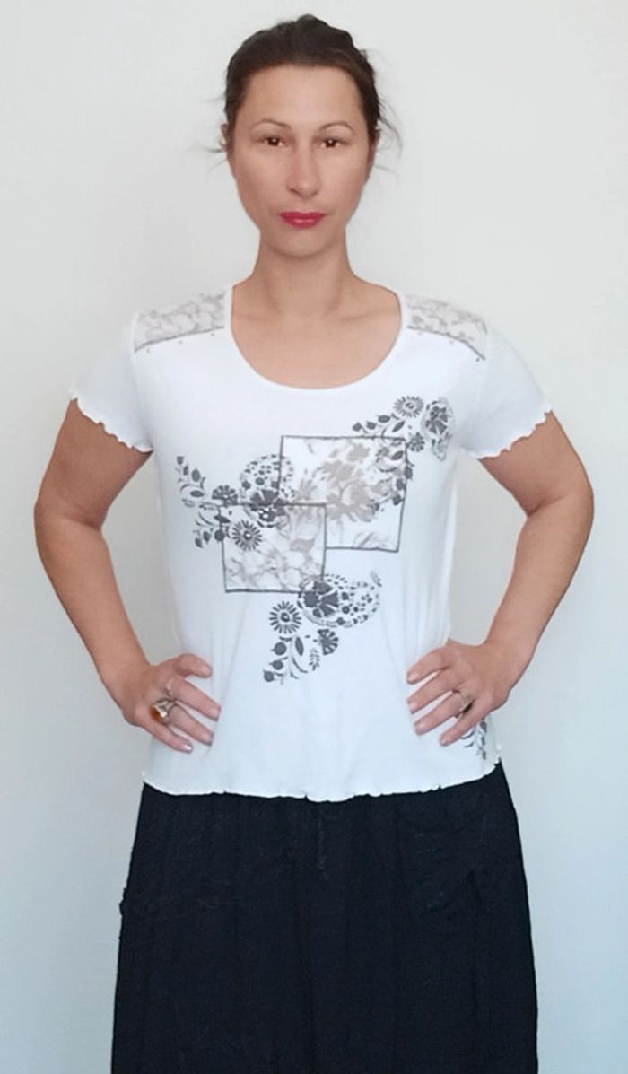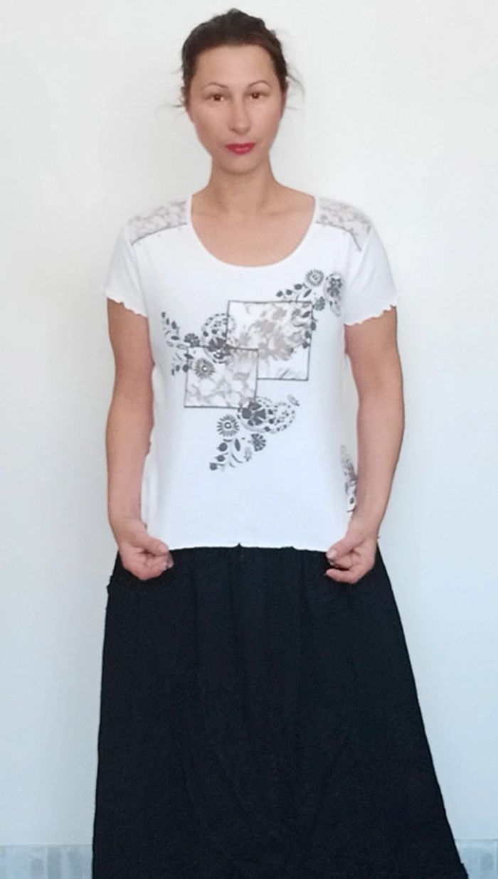 📣 Pour un lot, me contacter 😊🌸 -10% pour deux articles achetés -20% pour trois et + 🥰 #poupoupidouxl #poupoupidou44 🫶🫶🫶🫶🫶🫶 T-shirt blanc avec motifs fleurs taupes et grises, manches courtes petits volants, facile a porter et a assortir, taille 4 #tshirtxl #tshirt42 #tshirt4244 #tshirtblancxl