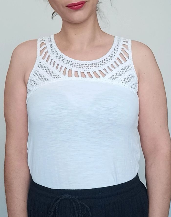 📣 Pour un lot, me contacter 😊🌸 -10% pour deux articles achetés -20% pour trois et + 🥰 #poupoupidou36 🫶🫶🫶🫶🫶🫶 Débardeur uni blanc détail crochet au col et bretelles, facile a porter et a assortir, basic et féminin #top36 #topblanc36 #topcrochet36 #hautete36 #debardeurcrochet36 #topbasic36 #toptex36