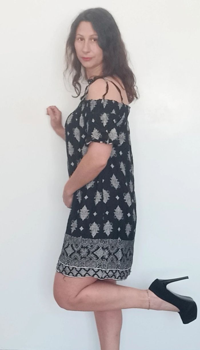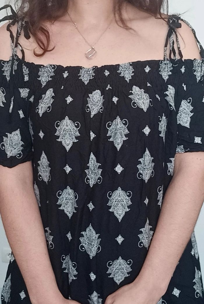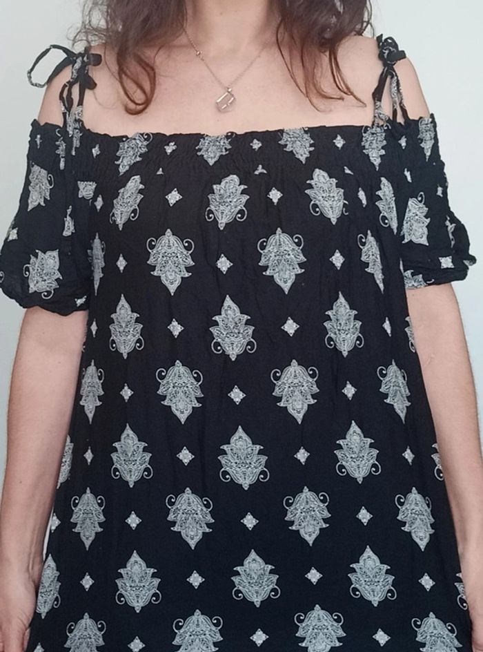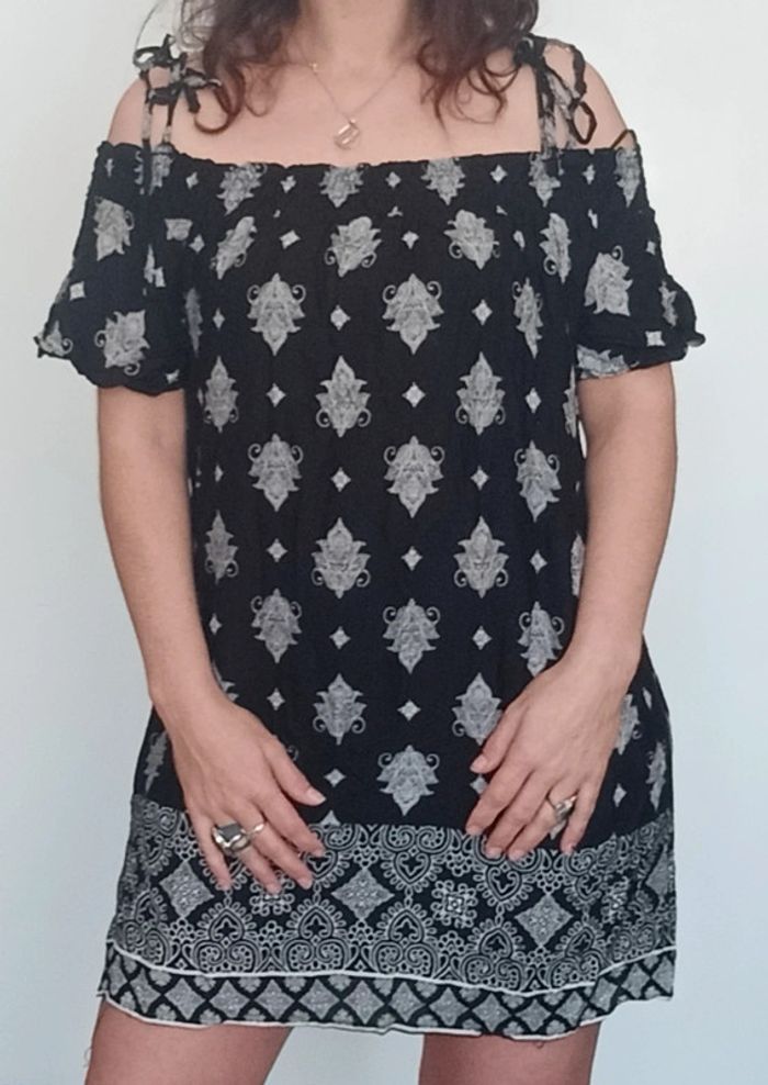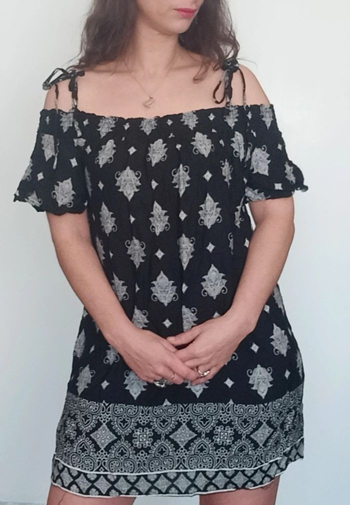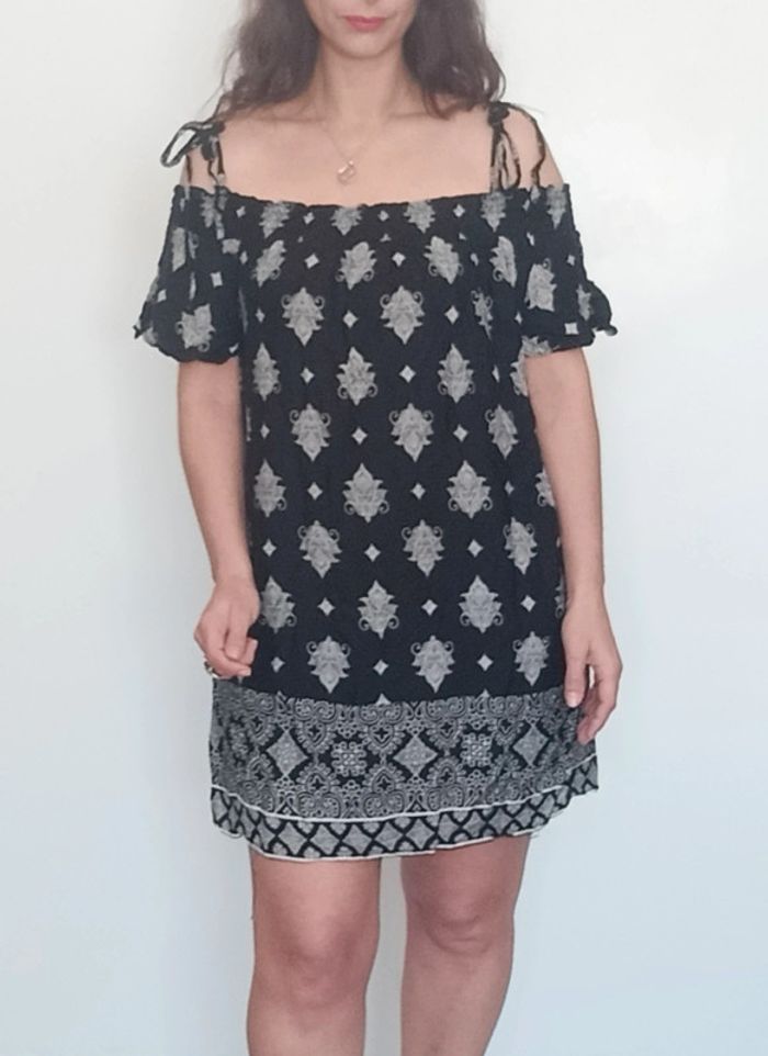 📣 Pour un lot, me contacter 😊🌸 -10% pour deux articles achetés -20% pour trois et + 🥰 #poupoupidou38 🫶🫶🫶🫶🫶🫶 Robe casual bohème chic, droite noir et blanche motifs #ethnique, détail épaules ouvertes avec bretelles a nouer et manches longues, romantique idéale printemps #robeepaulesnues38 #robeboheme38 #robe38 #robeethniquechic38 #robecasual38 #robeprintemps38 #robenoirertblanche38