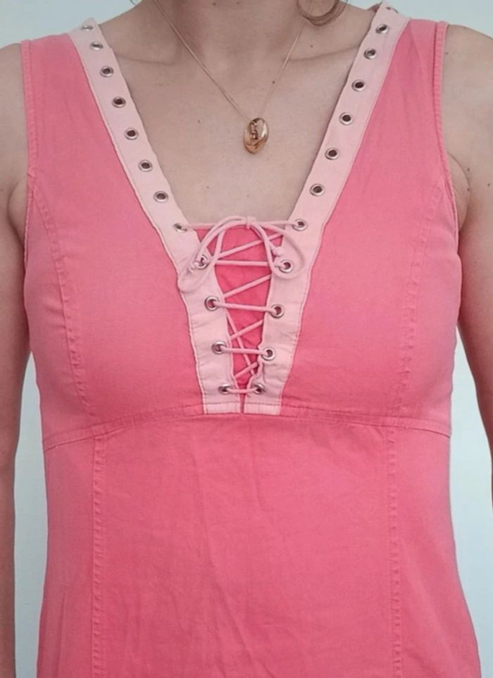 Robe casuale rose lacée poitrine - photo numéro 2