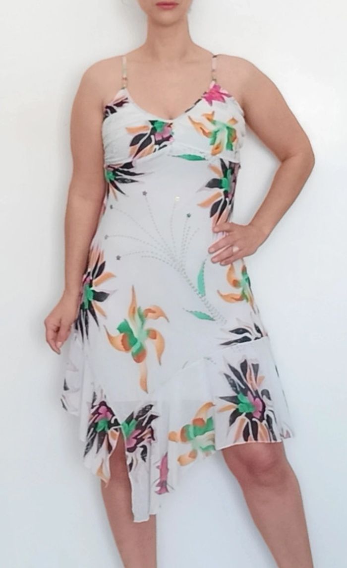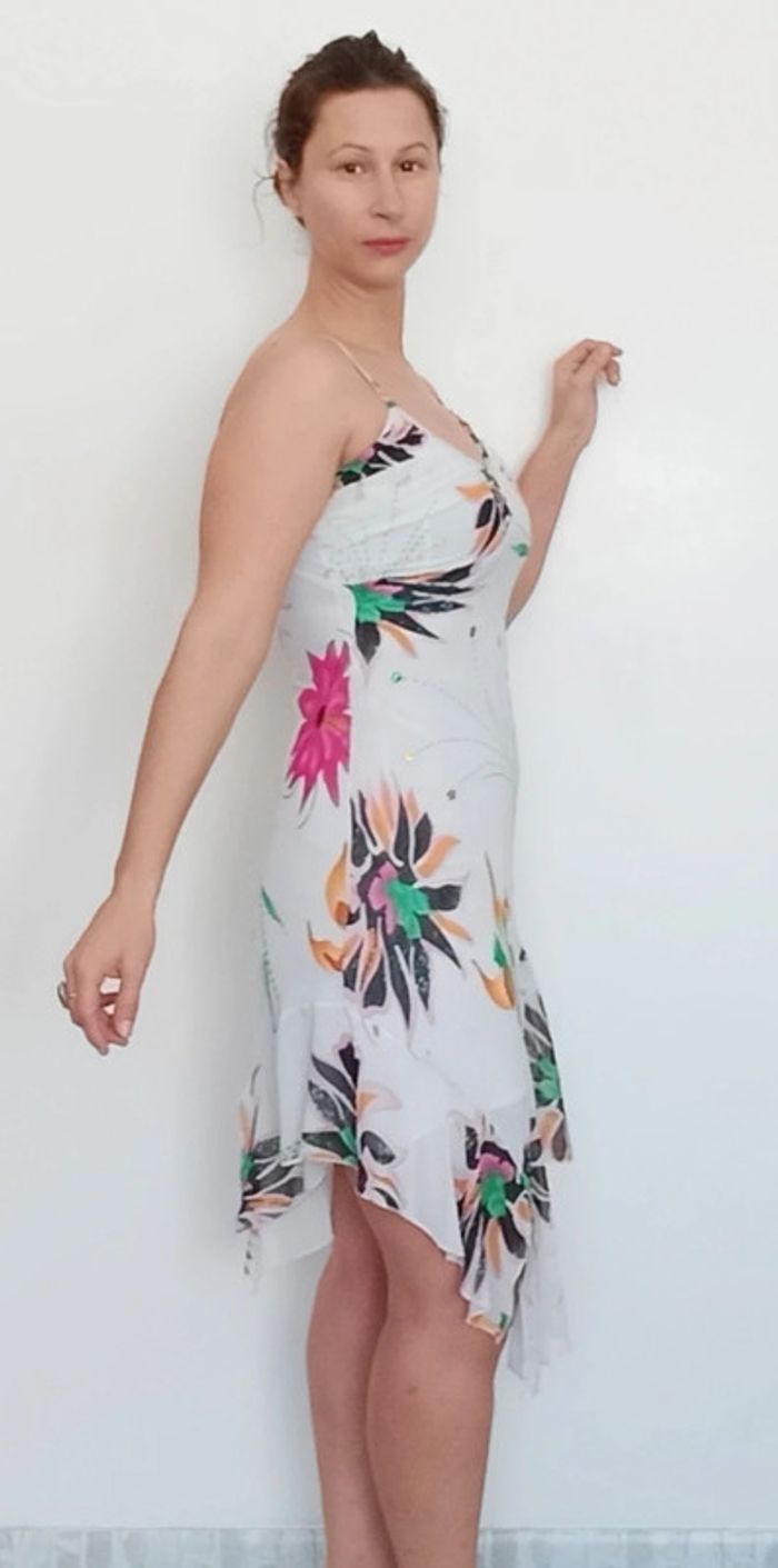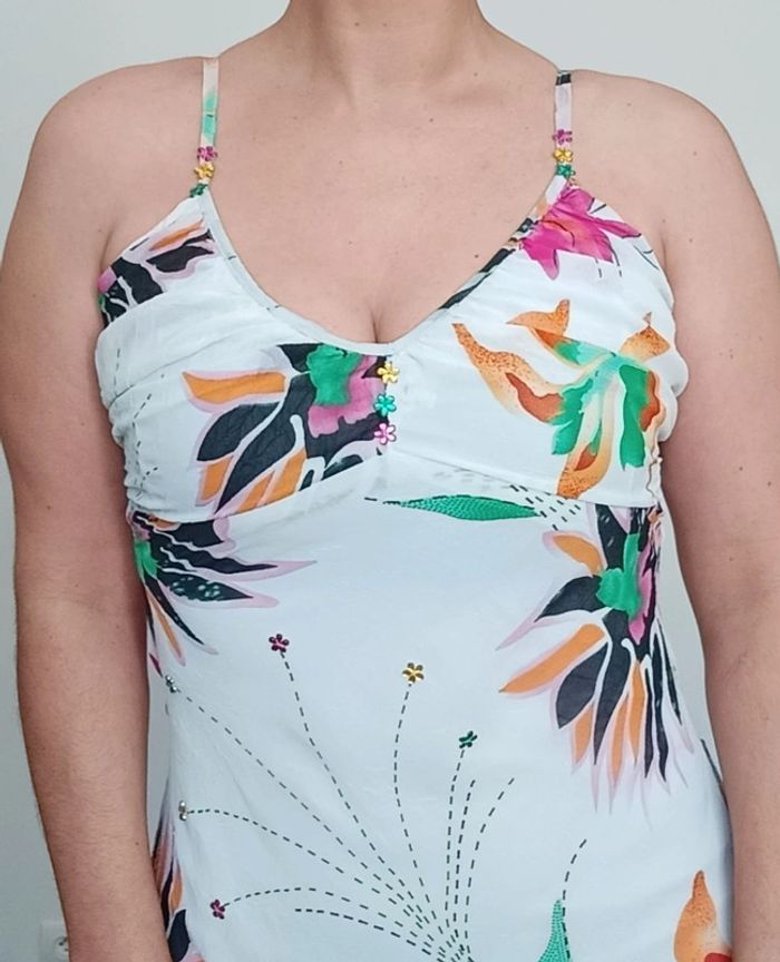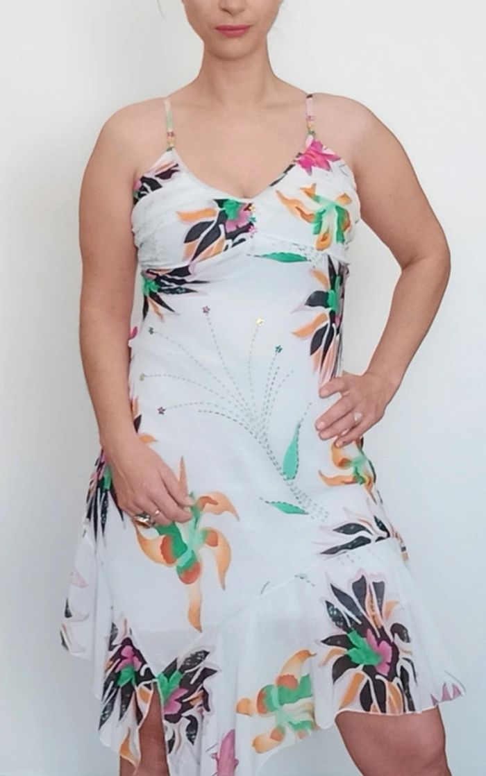 📣 Pour un lot, me contacter 😊🌸 -10% pour deux articles achetés -20% pour trois et + 🥰 #poupoupidou36 🫶🫶🫶🫶🫶🫶🫶 Belle robe longue printemps été, doublure courte, jupe longue asymetrique, blanche fleurs tropicales colorée, robe mais une petite déchirure sur la doublure, a l' intérieur, non visible, voir dernière photo😉 #robelongue36 #robelongueasymetrique36 #robetropicale36 #robeete36 #robelongueete36 #robefeminine36