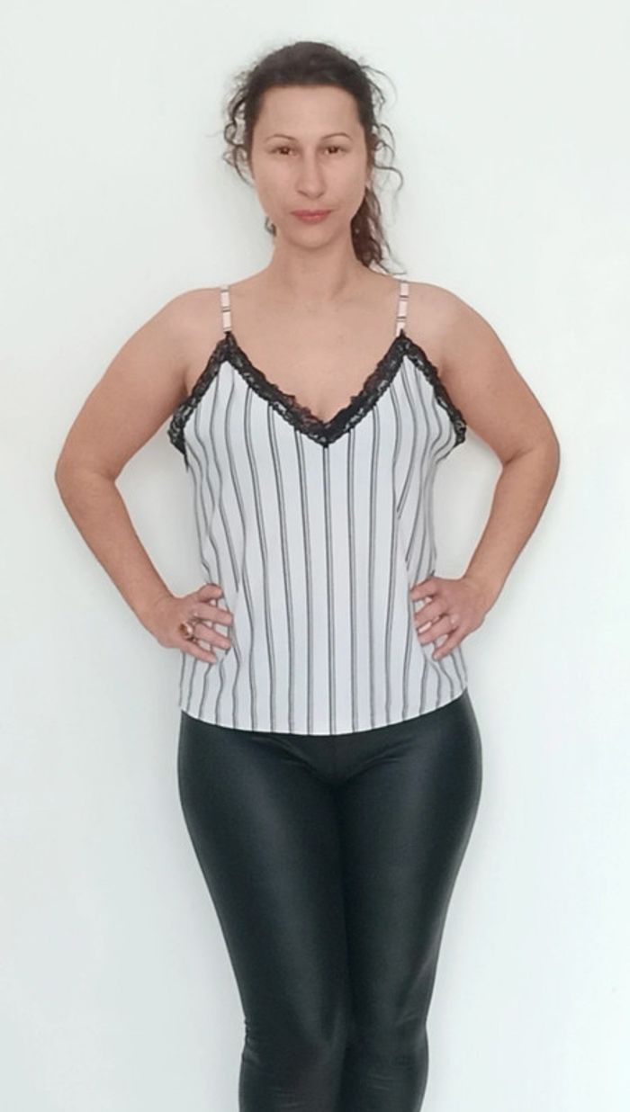 📣 Pour un lot, me contacter 😊🌸 -10% pour deux articles achetés -20% pour trois et + 🥰 #poupoupidou40 🫶🫶🫶🫶🫶🫶🫶 Top chic et féminin, rayé blanc et noir, fines bretelles, détail dentelle noir au décollete en V, facile a assortir, fluide et confortable #topcaraco40 #caraco40 #toprayé40 #topchic40 #debardeurraye40