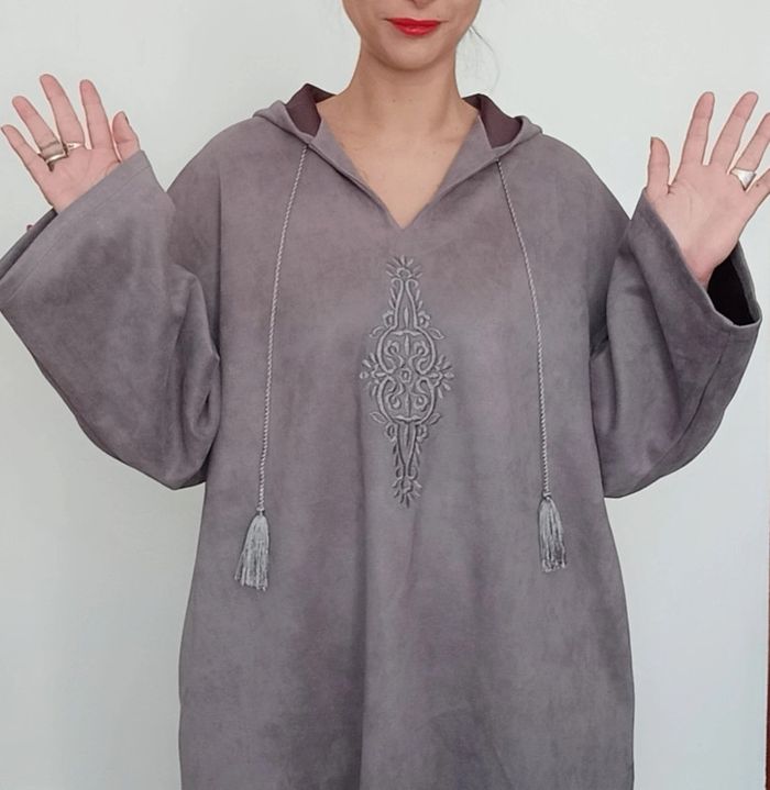 📣 Pour un lot, me contacter 😊🌸 -10% pour deux articles achetés -20% pour trois et + 🥰 #poupoupidou46 🫶🫶🫶🫶🫶🫶🫶 Robe / veste a capuche, à enfiler, ample et douce, en daim, style ethniquechic, confortable et sympa #pepite #vestedaim46 #vesteethnique46 #robelonguedaim46 #robedaim46 #robeethnique46 #robeveste #vesterobe #veste3xl #vestetendanceethnique #vestegrandetaille #robecasual46 #robegrandetaille