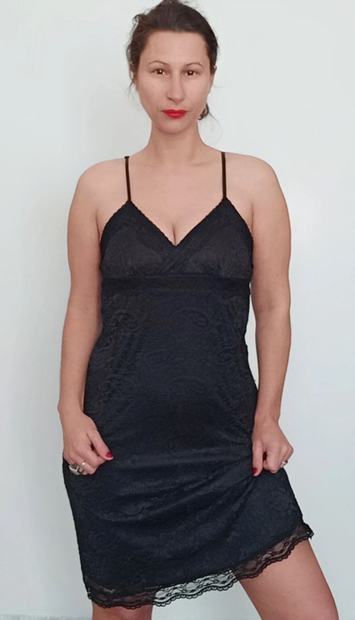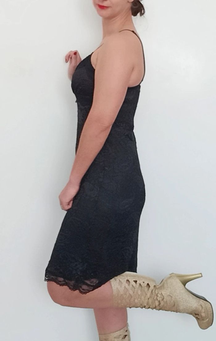 Robe de soirée chic doublée dentelle, mi longue, confortable, décolleté féminin #robedentelle40 #robechic40 #petiterobenoire40 #robemilongue40 #robesexy40 #robesoiree40 #robefeminine40 #robedecolletee40 #robepinup40