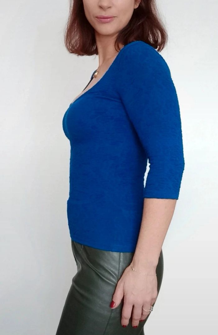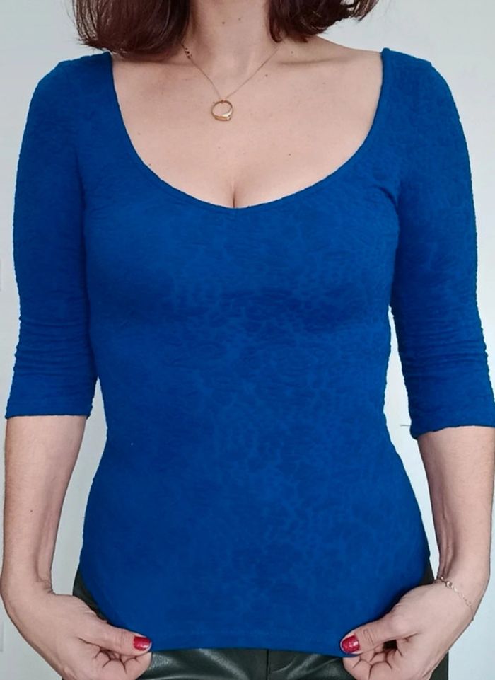 📣 Pour un lot, me contacter 😊🌸 -10% pour deux articles achetés -20% pour trois et + 🥰 #poupoupidou36 🫶🫶🫶🫶🫶🫶 Haut / pull fin moulant texturé bleu roi décolleté arrondi féminin, manches trois quarts, facile a assortir #pullbershka36 #hautbershka36 #bershka36 #hauttexture36 #hautbleuroi36 #hautdecolletearrondi36 #hautmoulant36.