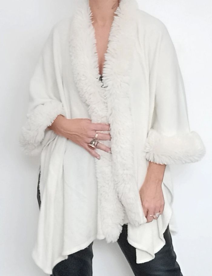 📣 Pour un lot, me contacter 😊🌸 -10% pour deux articles achetés -20% pour trois et + 🥰 #poupoupidoutu 🫶🫶🫶🫶🫶🫶 Gilet long polaire asymétrique façon cape, manches trois quarts papillon, bords fourres, confortable et chaud, bien porté mais bon état #giletblanc #giletasymetrique #giletfourrure #giletcape #giletlong #giletfourrureblanche #giletinterieur #giletpolaire #capepolaire #capefourrure