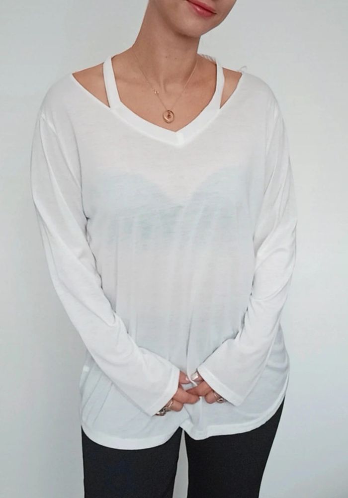 📣 Pour un lot, me contacter 😊🌸 -10% pour deux articles achetés -20% pour trois et + 🥰 #poupoupidou44 🫶🫶🫶🫶🫶🫶🫶 Haut blanc long confortable et facile a assortir, détail bretelles + manches longues, féminin #casualchic #hautxxl #hautblanc44 #hautbasic44 #hautlong44 #hautcasualchic44 #hautmancheslongues44 #hautfeminin44