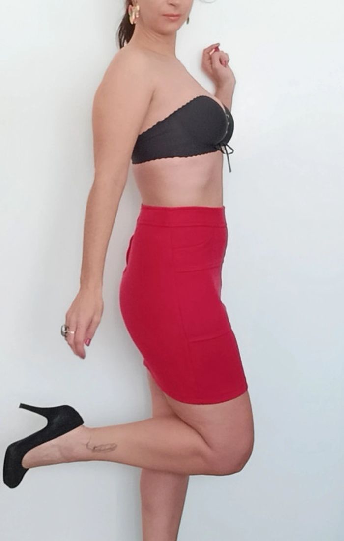 Mini jupe moulante daim rouge - photo numéro 3
