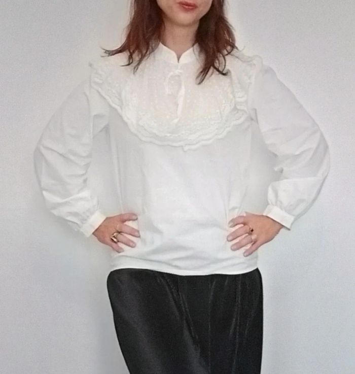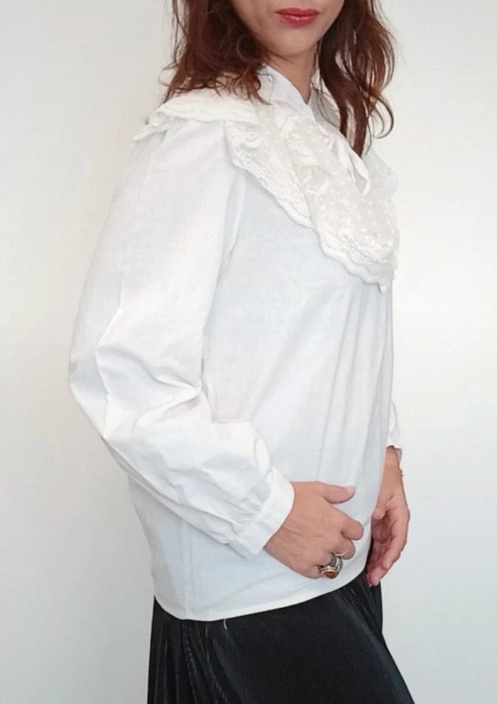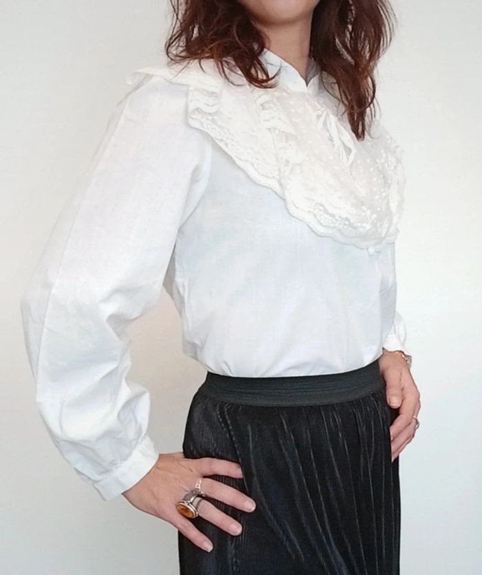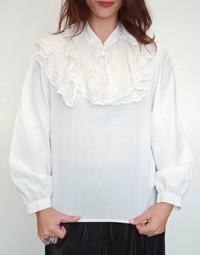 Chemise blanche #vintage très chic détail col rond tulle #chemisevintage