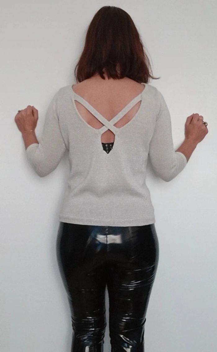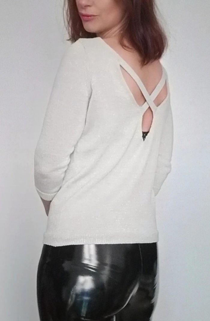 Joli pull chic, pailleté et dos ouvert, chic et féminin #pullpaillete #pullpaillettes #pulldosnu #pulldosouvert #pullchic #pullfetes #pullsoiree