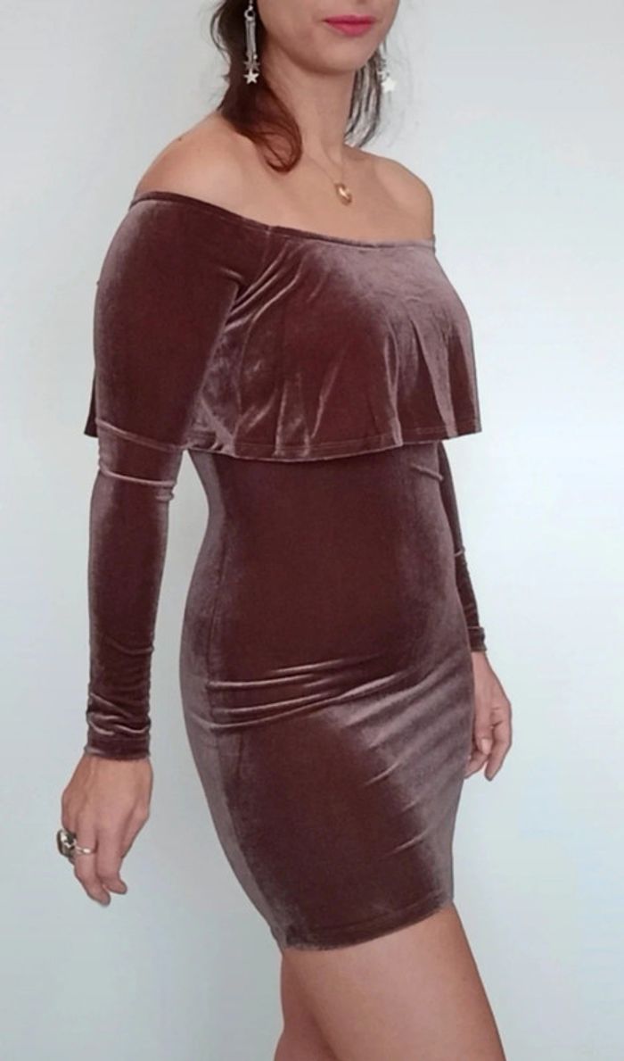 📣 Pour un lot, me contacter 😊🌸 -10% pour deux articles achetés -20% pour trois et + 🥰 #poupoupidou36 🫶🫶🫶🫶🫶🫶🫶 Robe douce et confortable, moulante, épaules nues, un volant, neuve ds son emballage d origine, couleur taupe #sexychic #robevelours36 #robechic36 #robemoulante36 #robesoiree36 #robefetes36 #robepinup36 #robesexy36