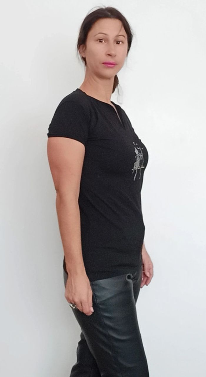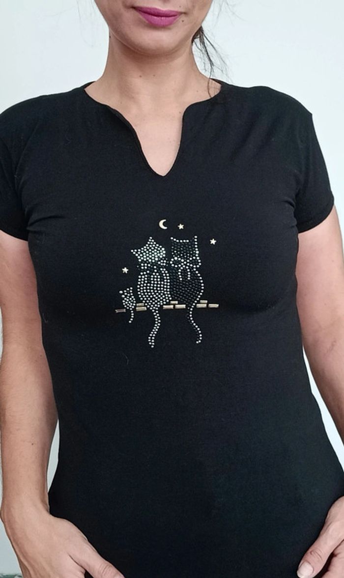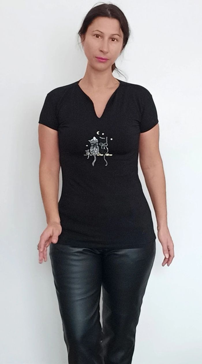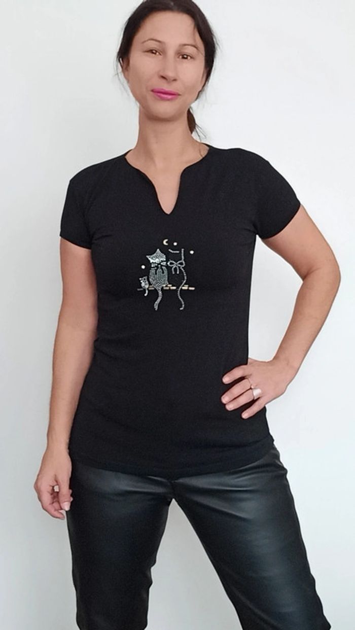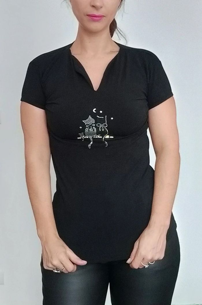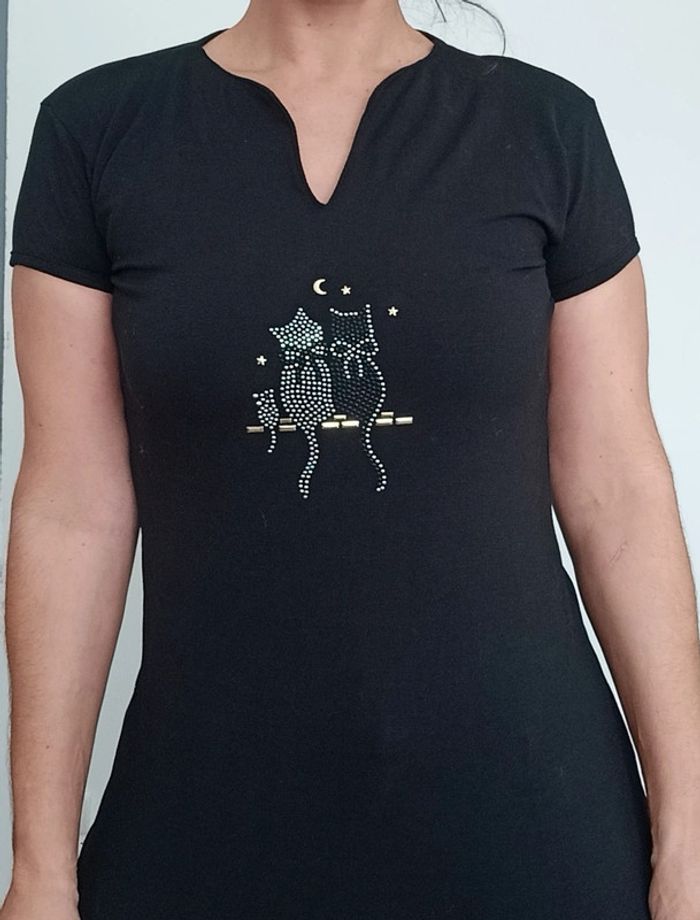 📣 Pour un lot, me contacter 😊🌸 -10% pour deux articles achetés -20% pour trois et + 🥰 #poupoupidouxl 🫶🫶🫶🫶🫶🫶🫶 Matière confortable et extensible, joli col en V, dessin chats en strass #tshirtchat #tshirtnoirxl #hautchat #hautstrass42