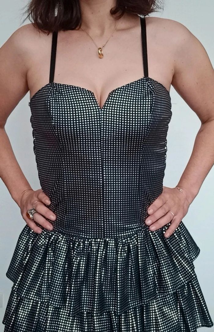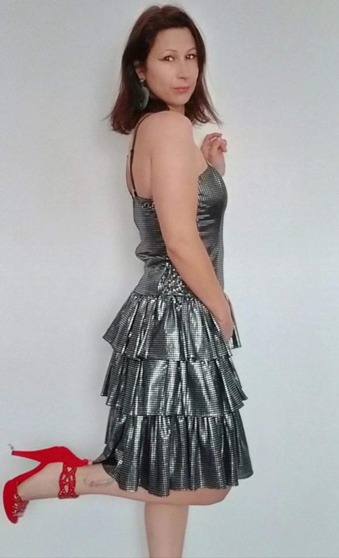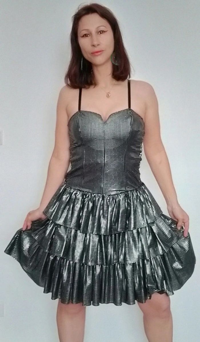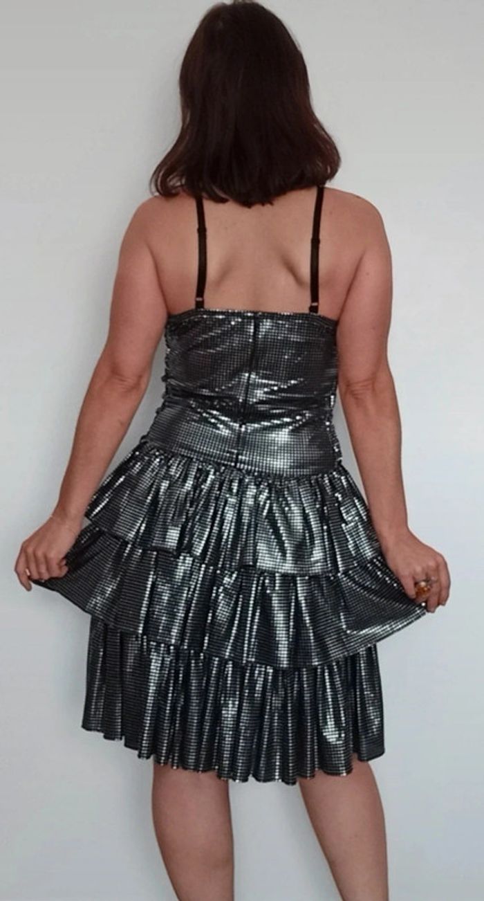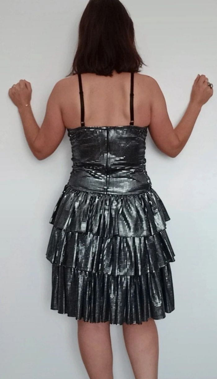 Robe de soirée, cocktail, jupe volantée, argentée brillante, décolleté en coeur et fendu, tres chic style #vintage matière de qualité #robecocktail #robeevenement #robeargentee #robebrillante #robecocktailvintage #robechicvintage #robegala #robefetes #robemariage #robebapteme #robepinup #robepinupvintage #robevintage #robequalite #poupoupidoutu