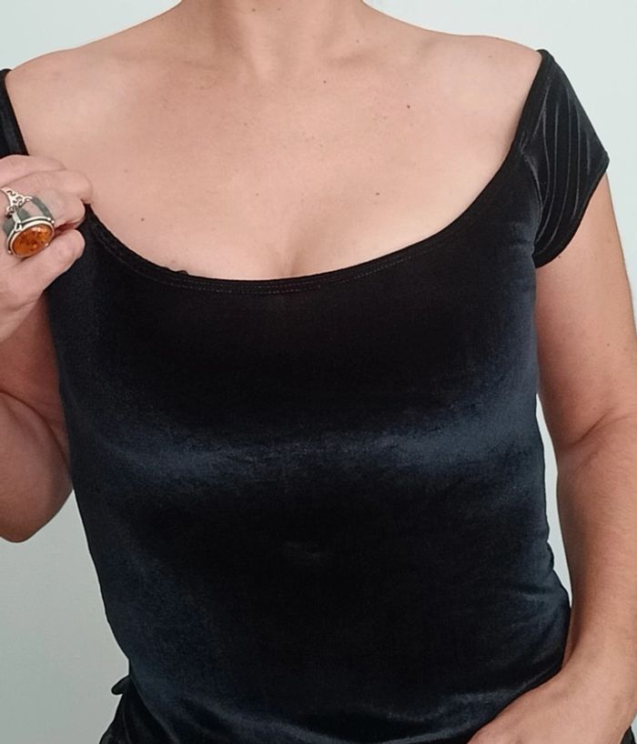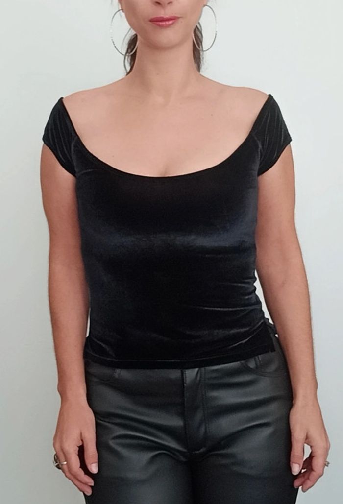 Chic et féminin, haut velours noir, peut se porter épaules nues, décolleté arrondi, doux et confortable, #hautvelours40 #hautpinup #hautveloursnoir #hautstradivariustaille40 #hautstradivarius #hautchic #hautfetes40 #hautepaulesdenudees #hautféminin #hautreveillon40 #poupoupidou40