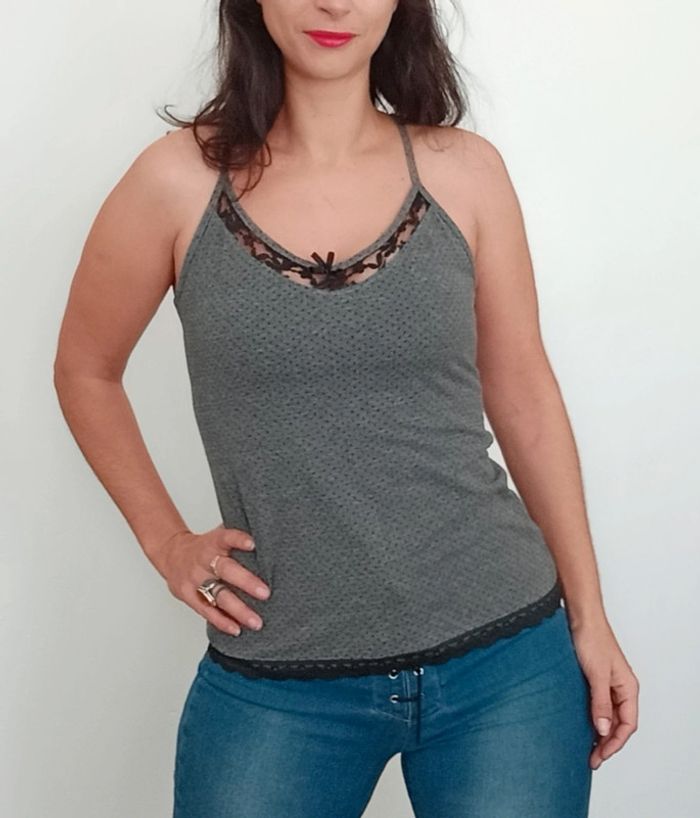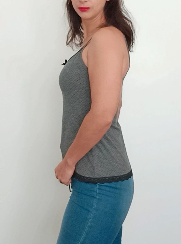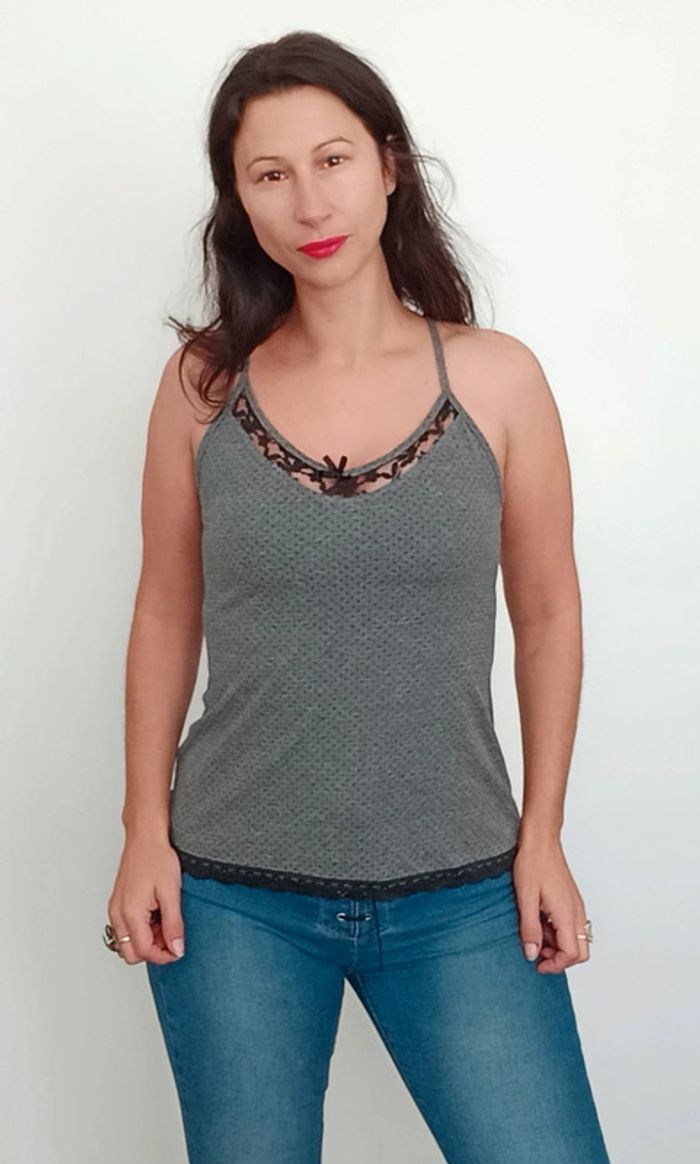 Confortable et féminin, détail ajouré et dentelle au décolleté, taille 1 #caraco #topcaraco #topajourédentelle #topdécolleté #caracodecollete #topcaraco36 #topcaraco34 #poupoupidou34 #poupoupidou36