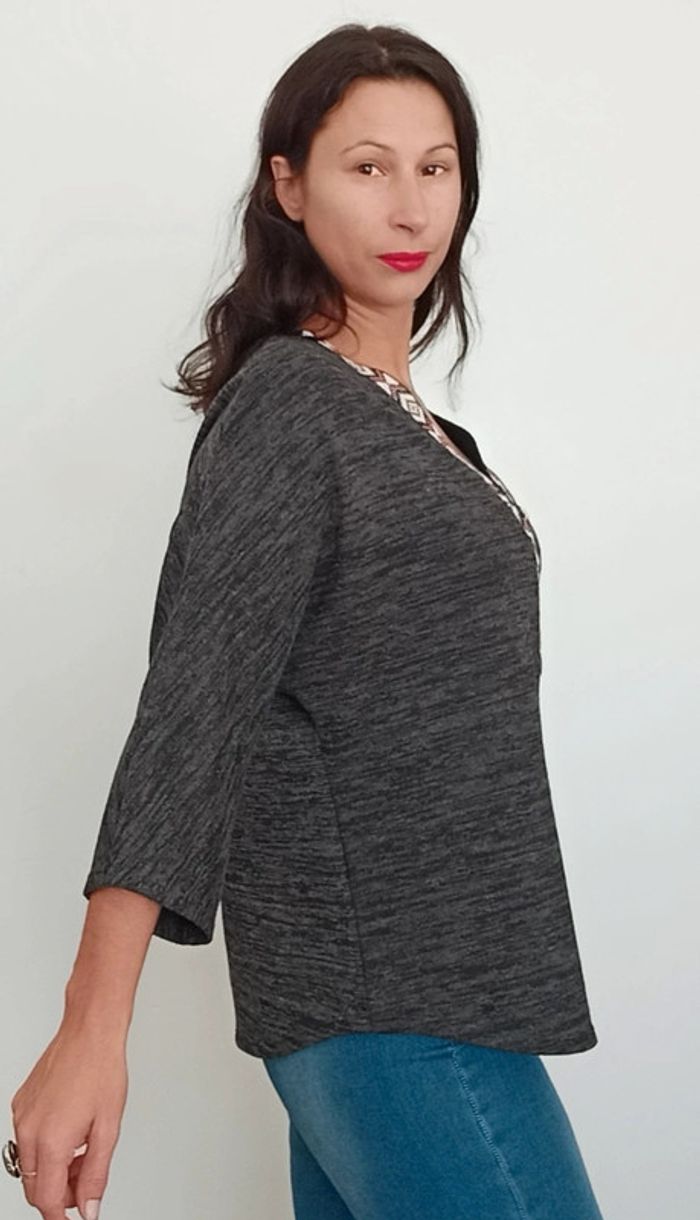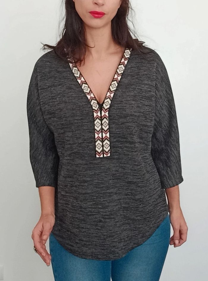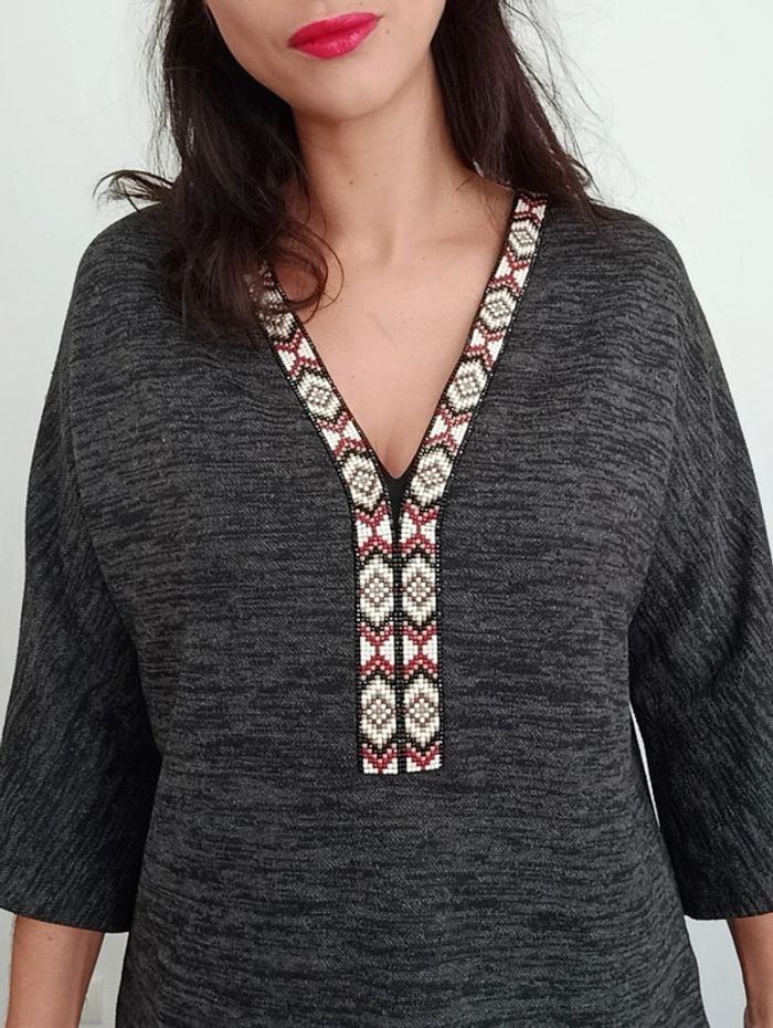 Manche trois quart, confortable, fluide, perles style ethnique aztèque au décolleté #blousexl #blouse42 #blouseethnique42 #hautethniquechic #hautcasual42 #haut42 #poupoupidouxl
