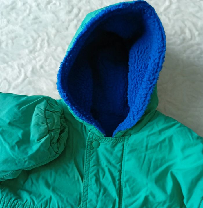 Belle combinaison avec capuche, intérieur entièrement fourré, chaude élastiquée chevilles et poignets, verte motifs sapins, 62 CMS de long #combinaisonbebe #combinaisonhiver6mois #combinaisonfourréebébé #combichaudebebe #combinaisonski6mois #manteauintegral #combi6mois #combibebegarcon #poupoupidou6mois