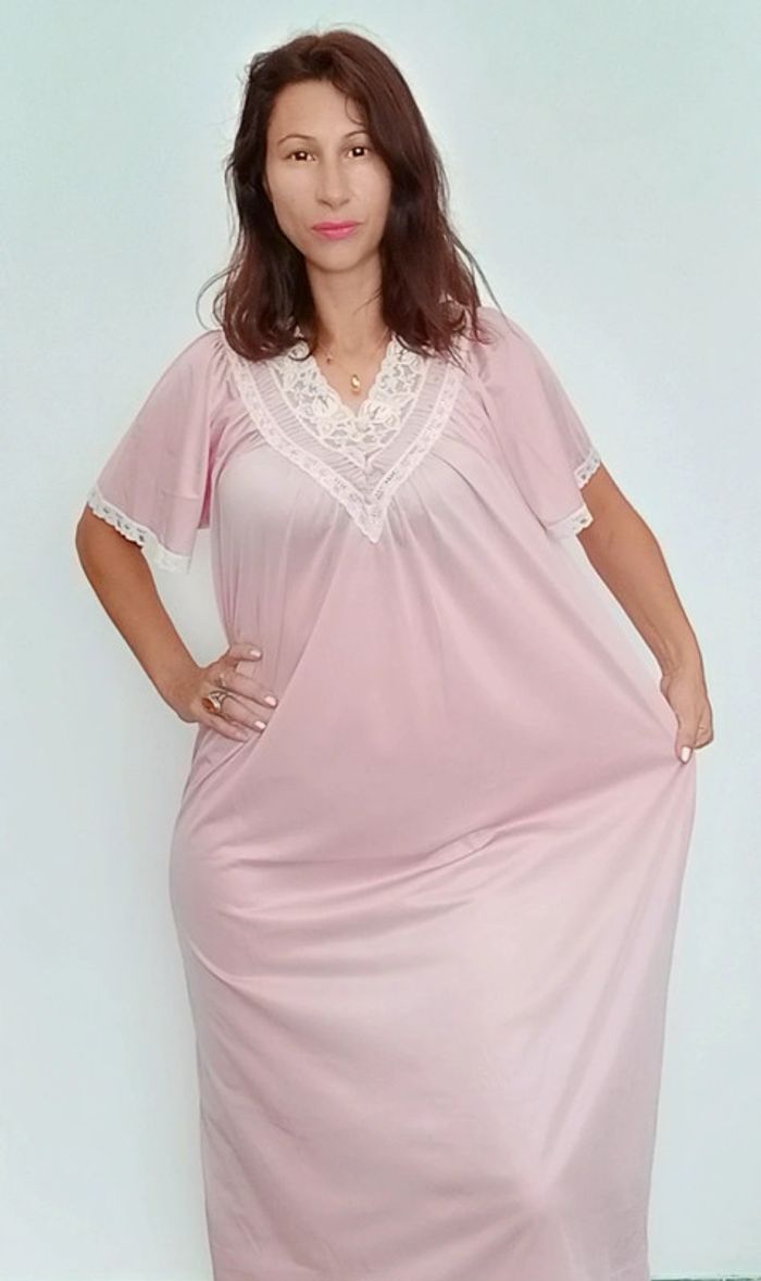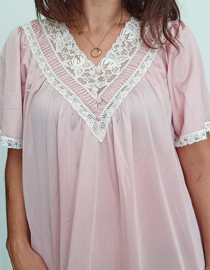 #vintage nuisette douce et confortable longue, détail crochet col et manches, élégante, peut convenir jusqu au 44/46 #pépite #pepitevintage #chemisedenuitvintage #nuisettevintage #nuisettelonguevintage #nuisetteromantique #pinup #poupoupidoutu