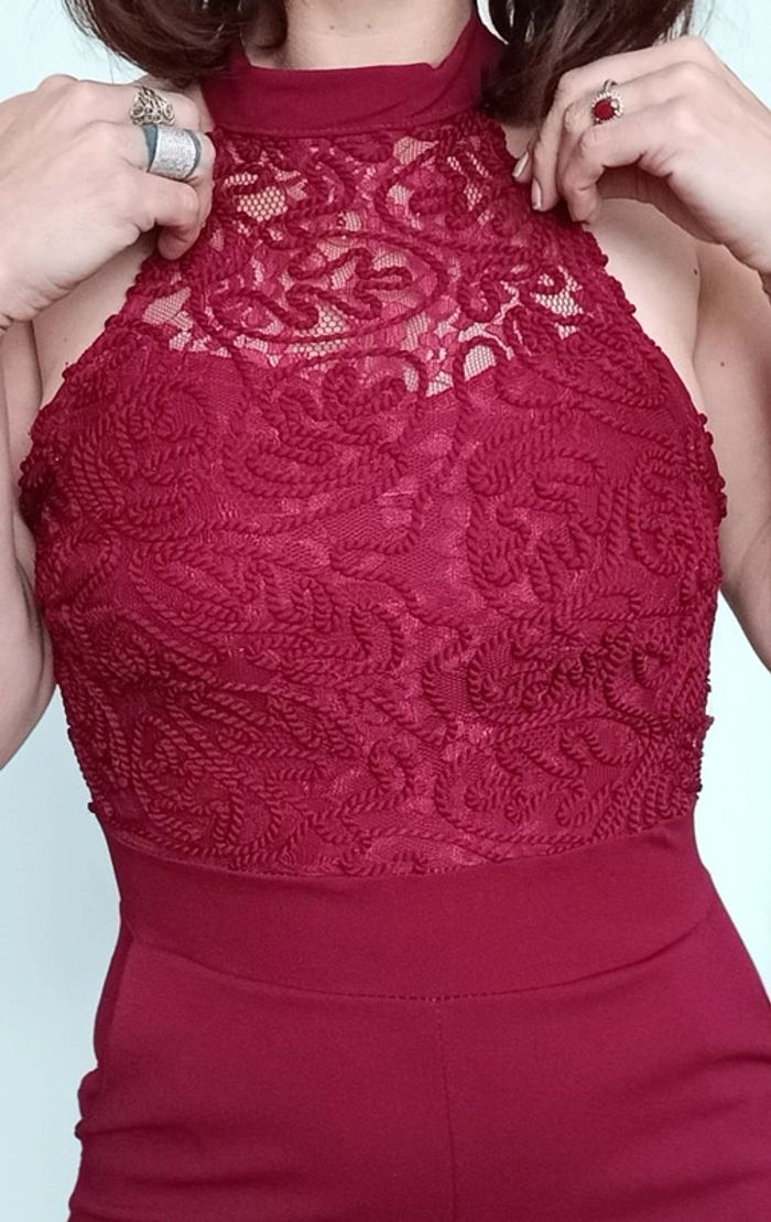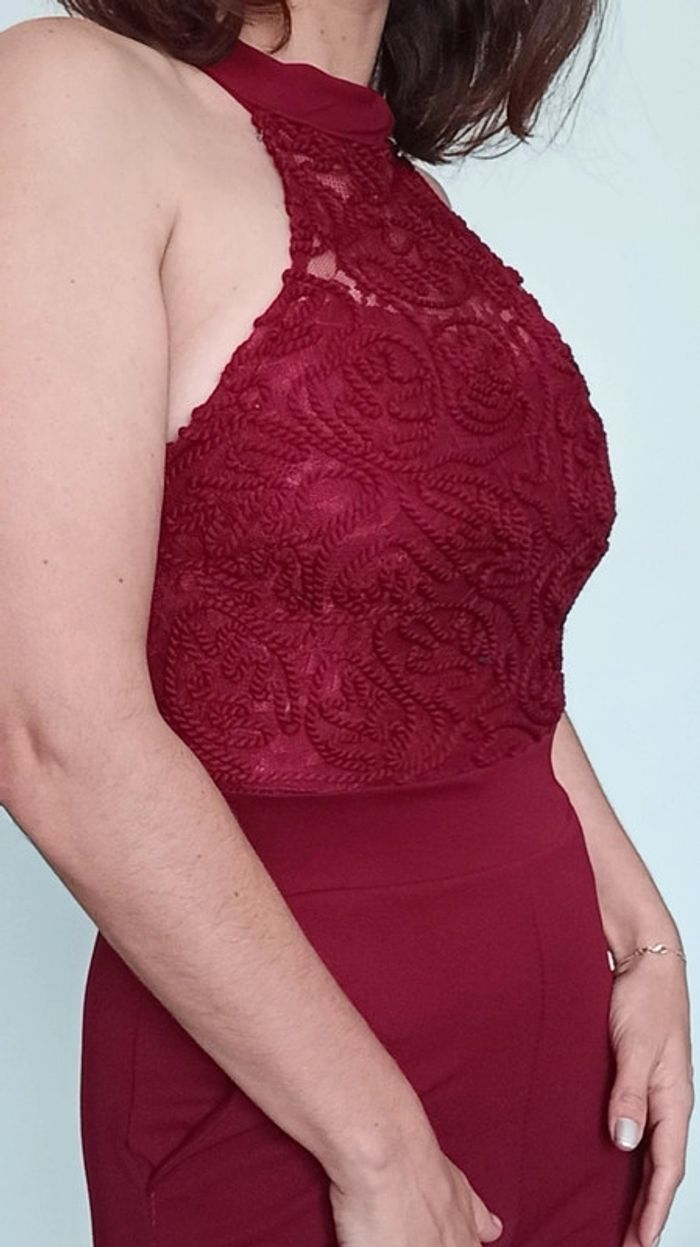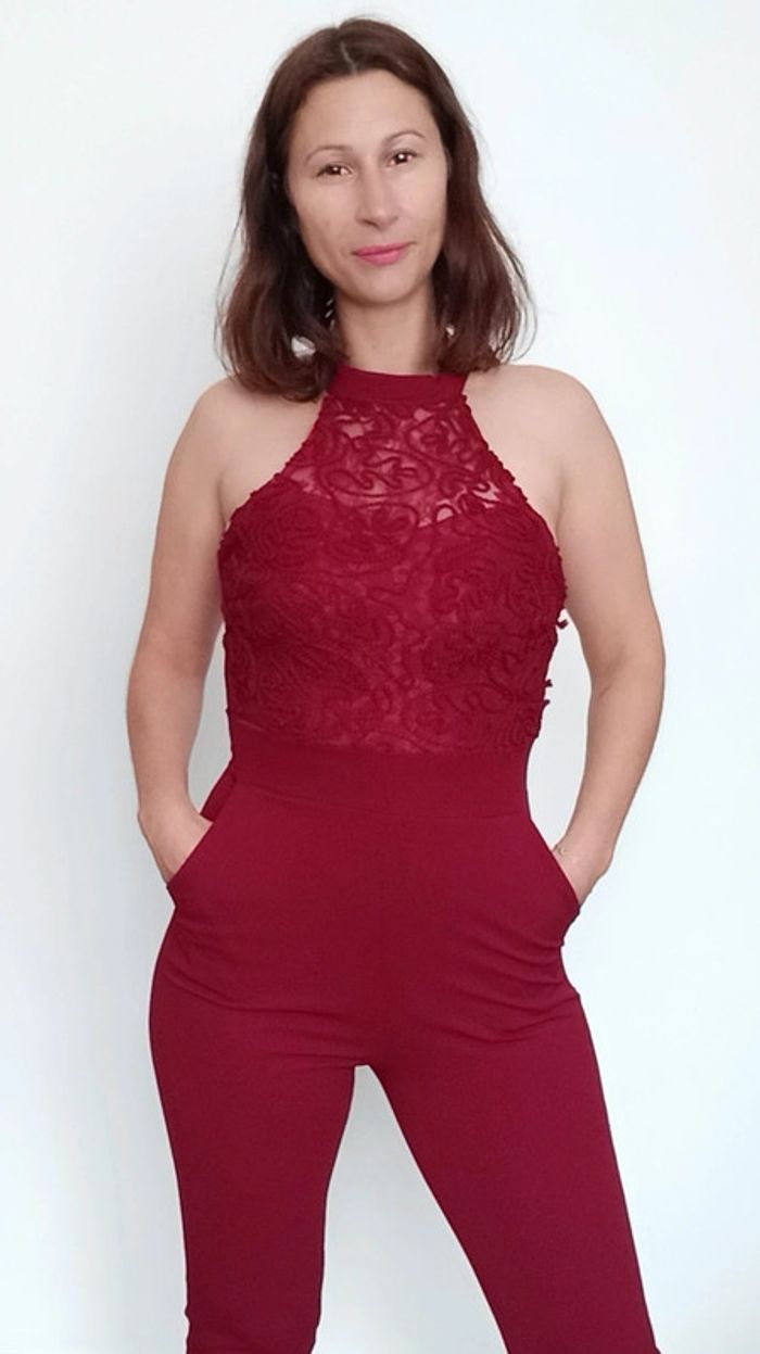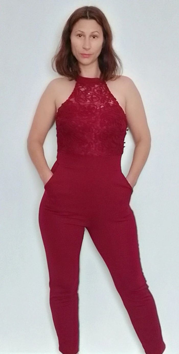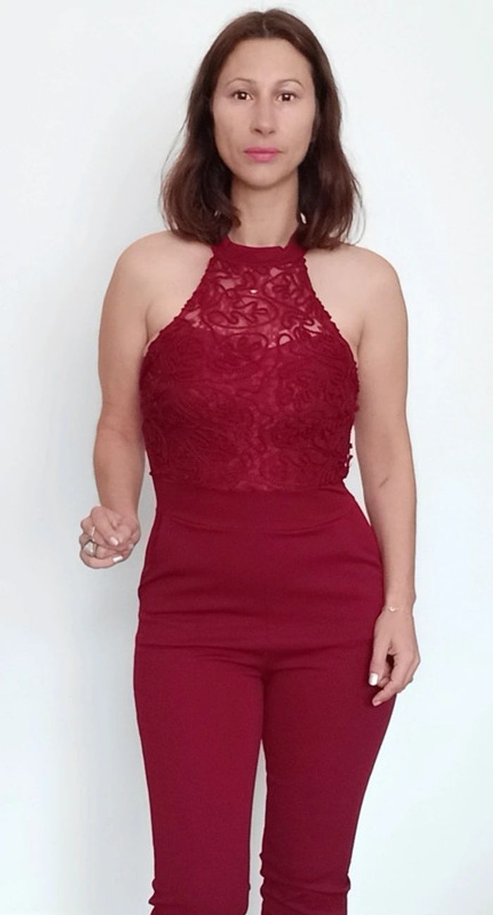 Matière de qualité, extensible, forme dis nu, haut doublé crochet avec coques intégrées à la poitrine (pas besoin de soutien gorge), couleur vin, chic et #sexy tbe mais petit défaut a la fermeture eclair dos qui dépasse un peu une fois fermée ( voir photo de dos) mais fonctionnelle 😉 #combi #combipantalon #combipantalonchic #combipantalonmoulante #combipantalonsexy #poupoupidoutu