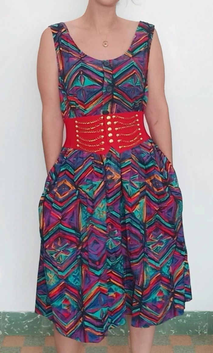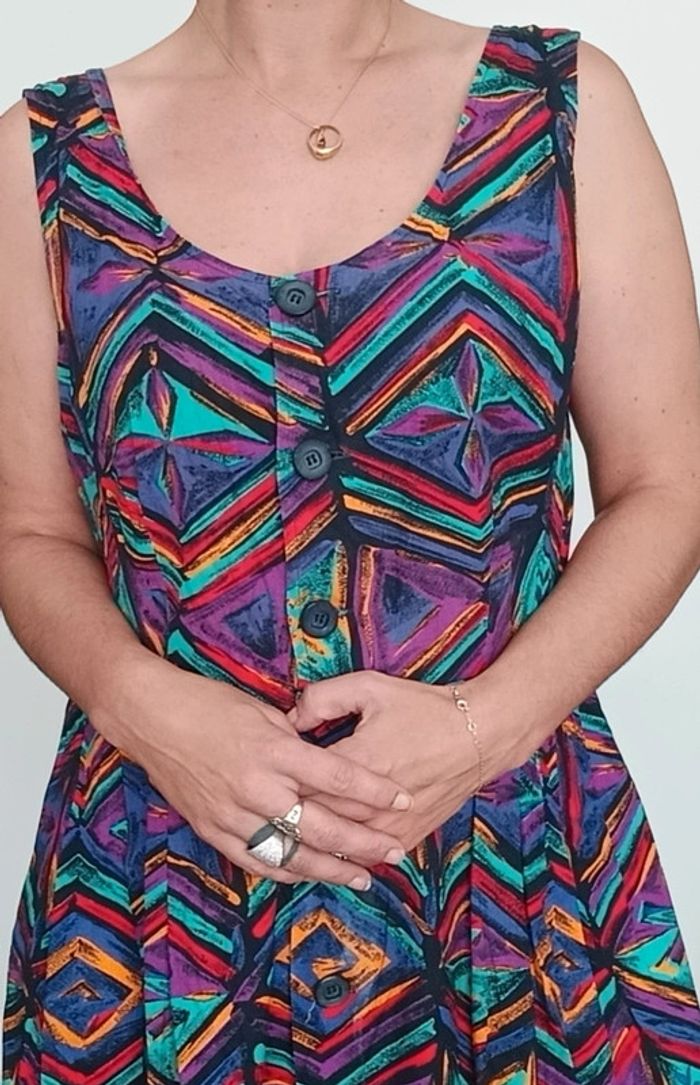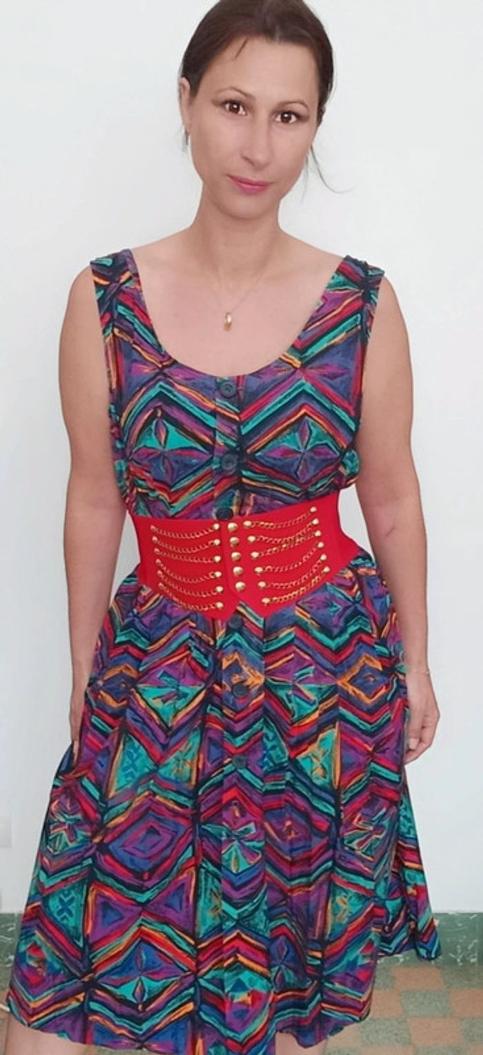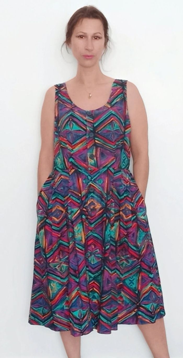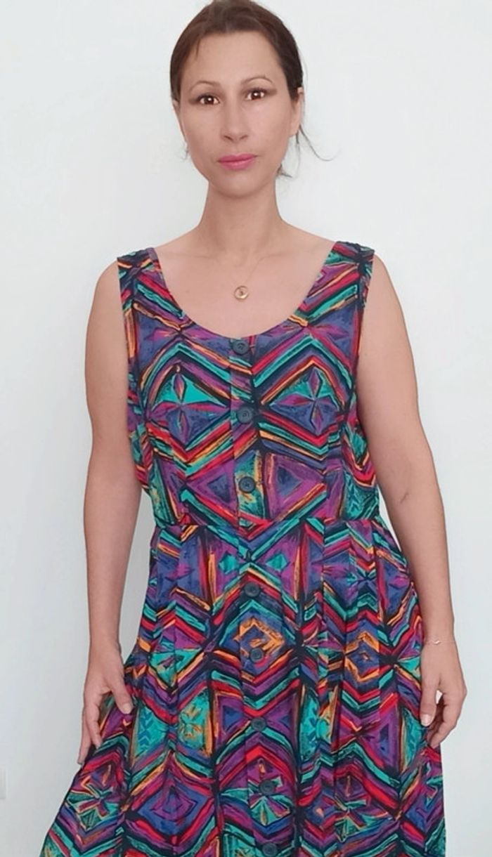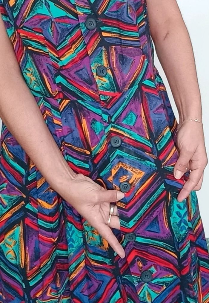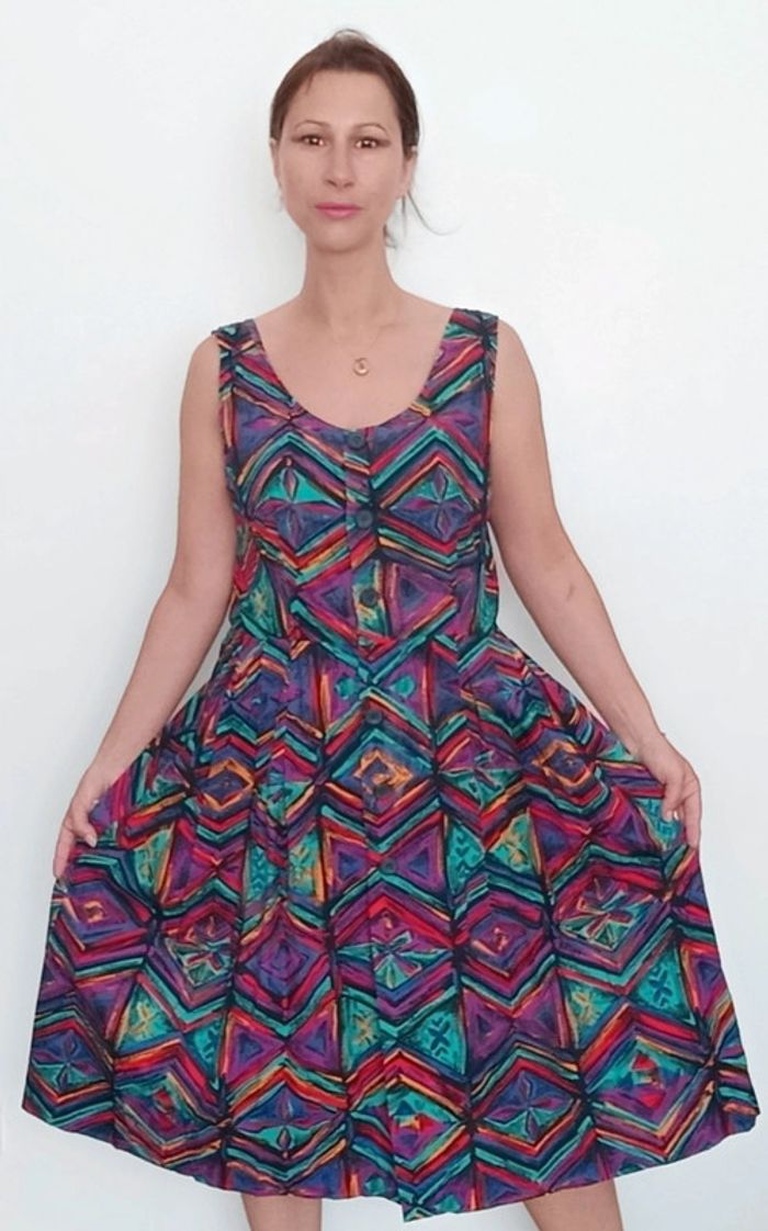 Très belle robe d été #vintage , colorée, forme #retrob#pinup , féminine #casualchic tbe juste légère atténuation des couleurs a un endroit mais très peu visible portée 😉 #robevintage #robeetevintage #robevintagexl #robevintage42 #robechicxl #robevintagecoloree #robepinupxl #robepinup42 #poupoupidouxl