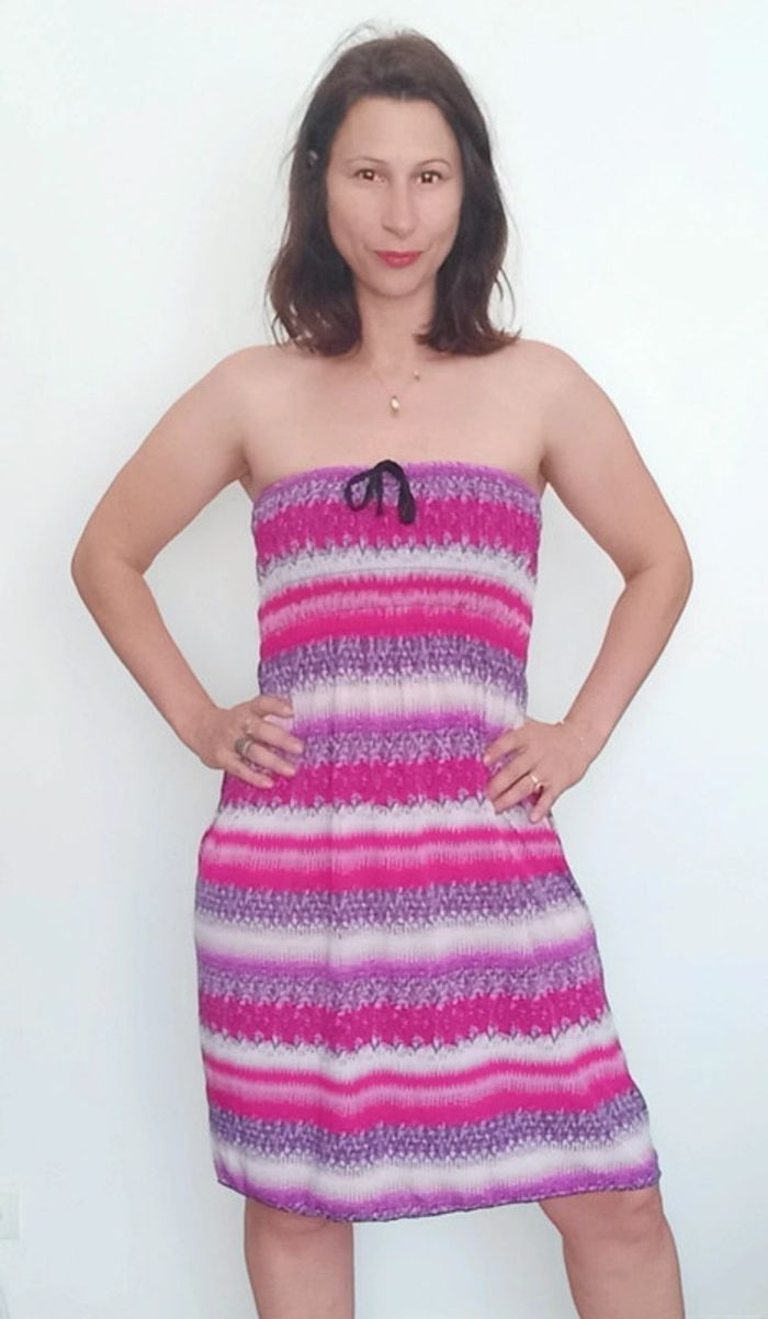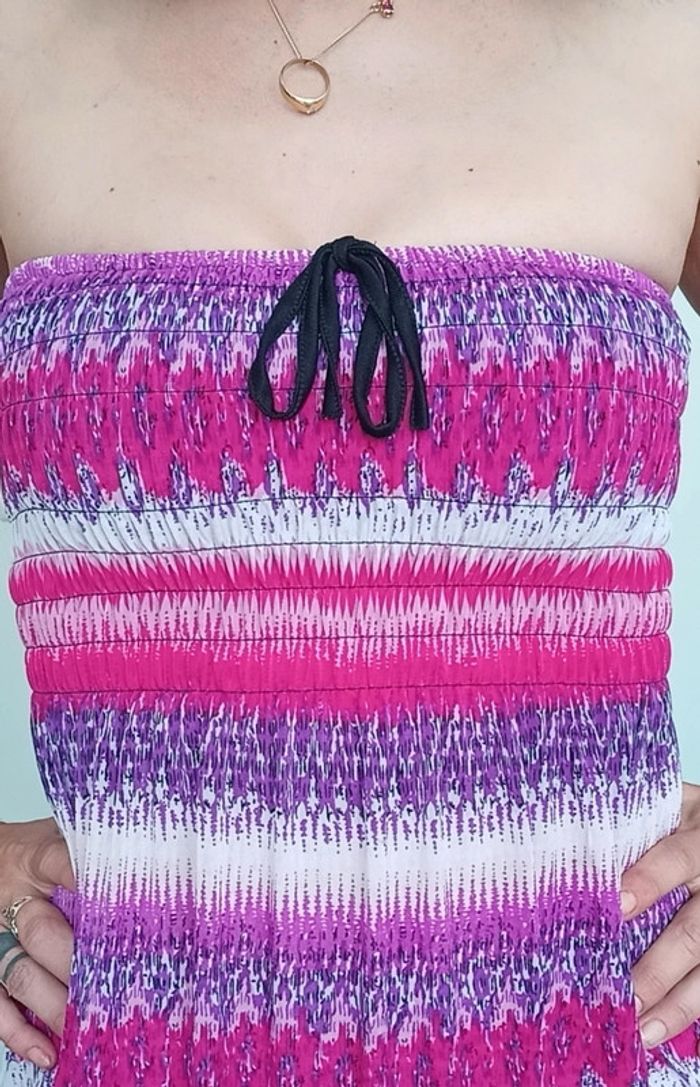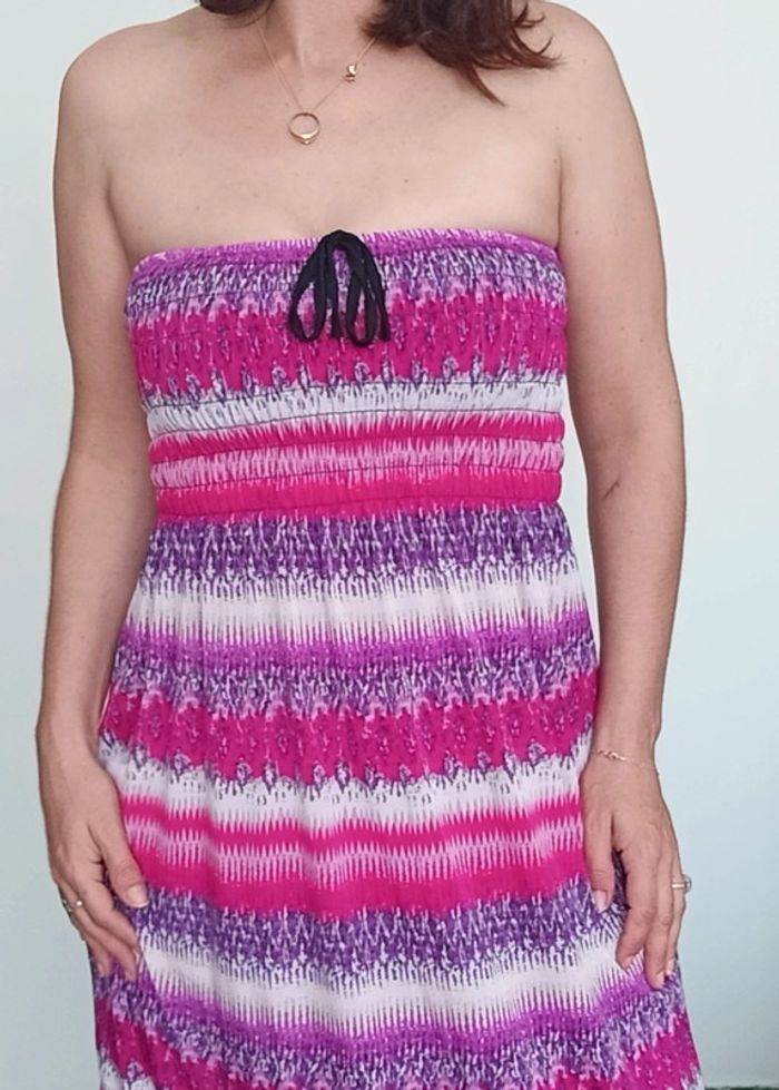 Taille unique, matière douce et extensible, bustier smocké, belles couleurs surtout sur peau bronzée, agréable à porter #robeete #robebustier #robecoloree #robemidi #robeetebustier #poupoupidoutu